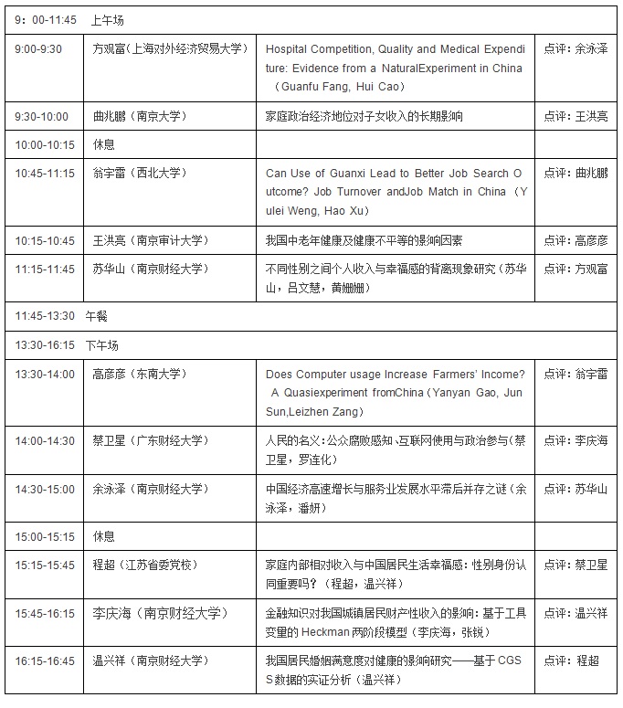 香樟经济学Seminar(南京)2017年第4期主要以劳动经济学、发展经济学为主题,由今年会承办。征文期间得到许多学者的大力支持。经过协商,本次讨论会将于2017年9月23日在今年会官网(仙林校区)食工楼二楼会议室召开,一共汇报11篇论文。欢迎各位同仁一起参与讨论!