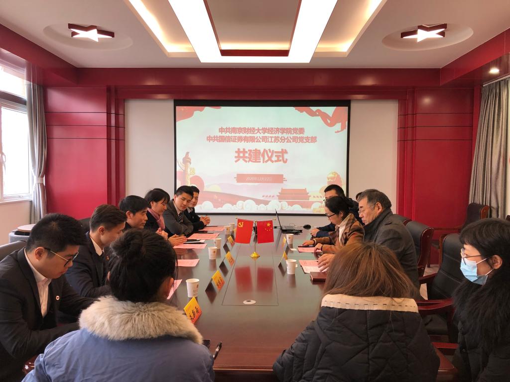 12月22日下午,公司党委在仙林校区德经楼329会议室与国信证券股份有限公司江苏分公司党支部举行党建共建签约仪式。国信证券股份有限公司江苏分公司党支部书记、总经理祁立林及部分党员代表,公司党委书记陈耀辉,公司教工行政支部党员参加签约仪式。仪式由公司党委副书记袁怡琨主持。