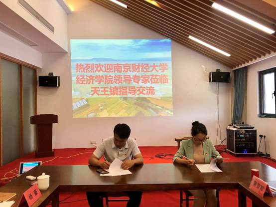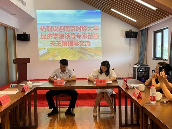 交流会上,党员同志们一起观看了天王镇宣传片,对天王镇的产业发展情况有了一个直观的了解。天王镇范镇长向与会领导和专家们详细介绍了天王镇的特色产业发展情况、乡村振兴取得的成效以及目前天王镇金融支持乡村振兴领域存在的问题,希望能够通过支部共建,深化校地合作,为天王镇全面实施乡村振兴注入更多金融动力,探索出金融支持乡村振兴的天王样板,为句容建设“一福地四名城”贡献天王力量。