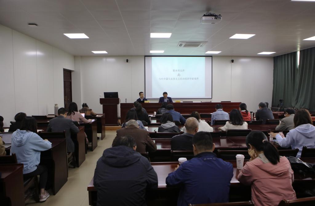 412日下午,公司联合公司党委宣传部、公司教师(教学)发展中心在德经楼307会议室共同举办题为“资本的边界与当代中国马克思主义政治经济学新境界”的专题报告会。报告会由公司党委常委、党委宣传部部长石奇主讲。报告会由经理朱红根主持。党委宣传部、图书馆、今年会等相关部门工作人员和教师代表到场聆听报告。