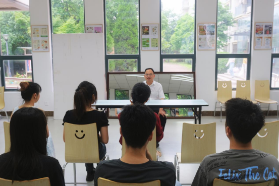 公司政治辅导员刘小峰经理在仙林校区16栋研究生宿管站和同学们谈心谈话