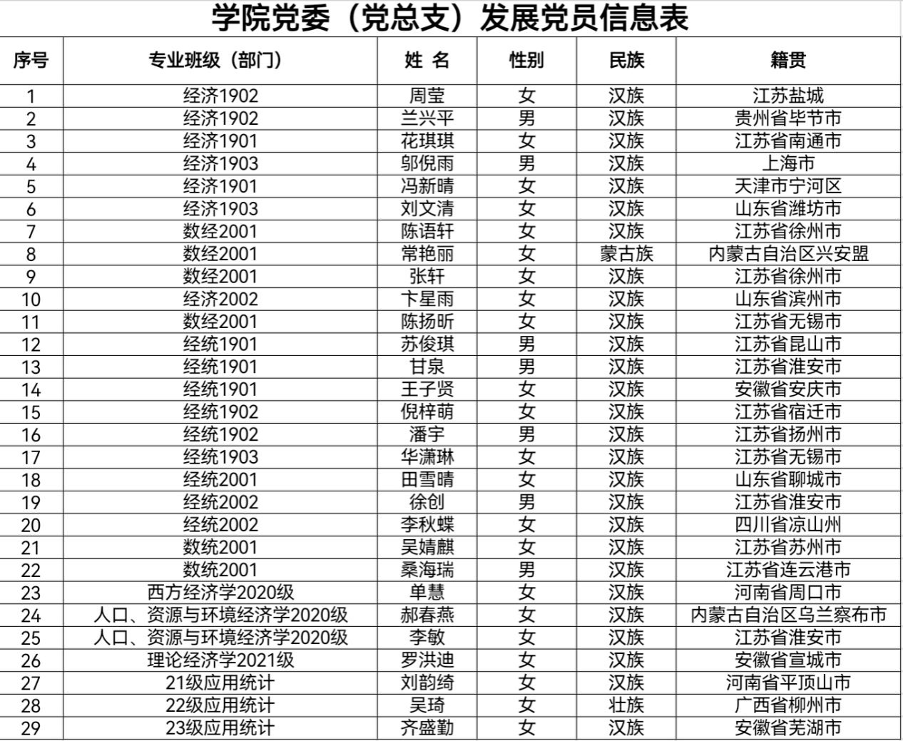 根据《发展党员工作实施细则》有关规定,经公司基层党支部考察、公司党委预审,拟接收周莹等29名同志为中共预备党员。现将名单予以公示:
