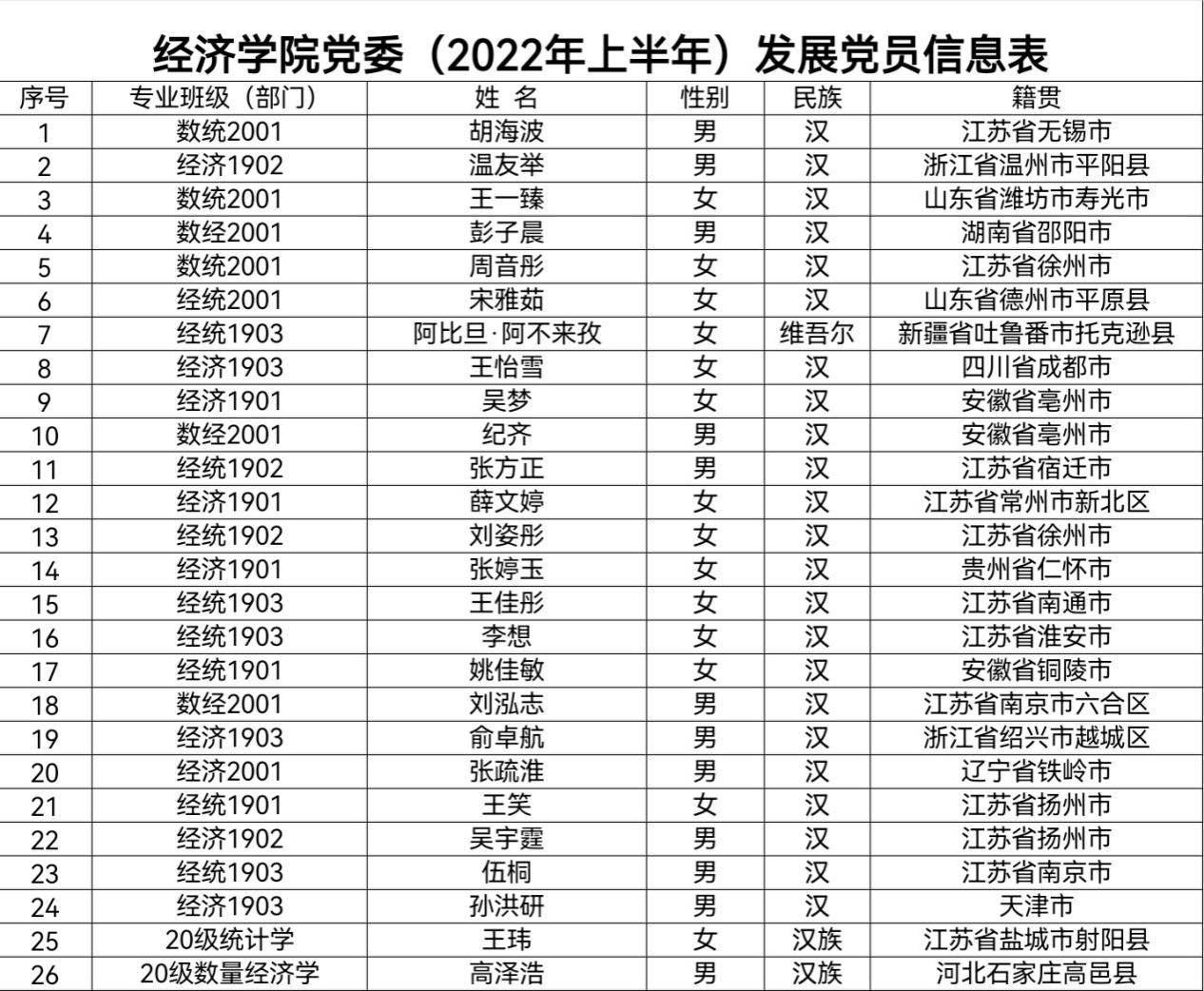 根据《发展党员工作实施细则》有关规定,经公司基层党支部考察、公司党委预审,拟接收胡海波等26名同志为中共预备党员。现将名单予以公示: