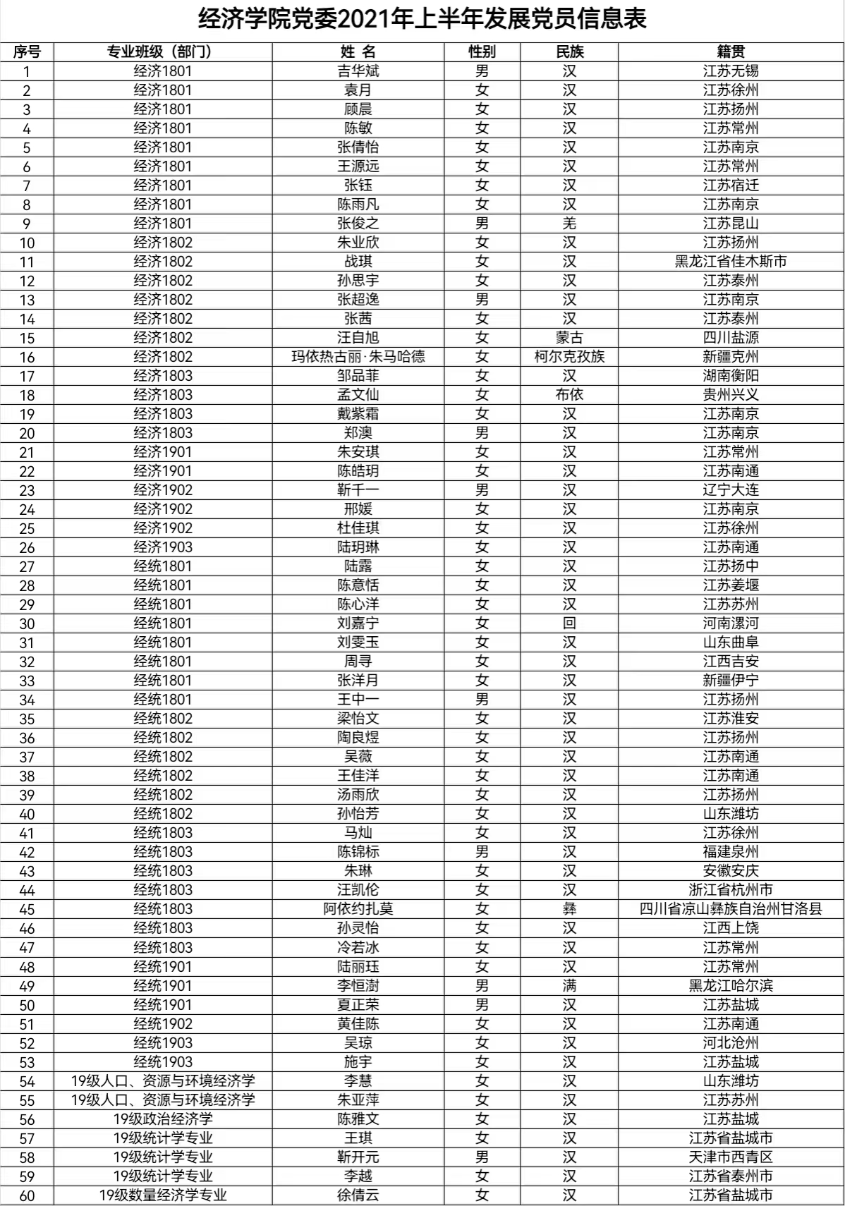 根据《发展党员工作实施细则》有关规定,经公司基层党支部考察、公司党委预审,拟接收吉华斌等60名同志为中共预备党员。现将名单予以公示: