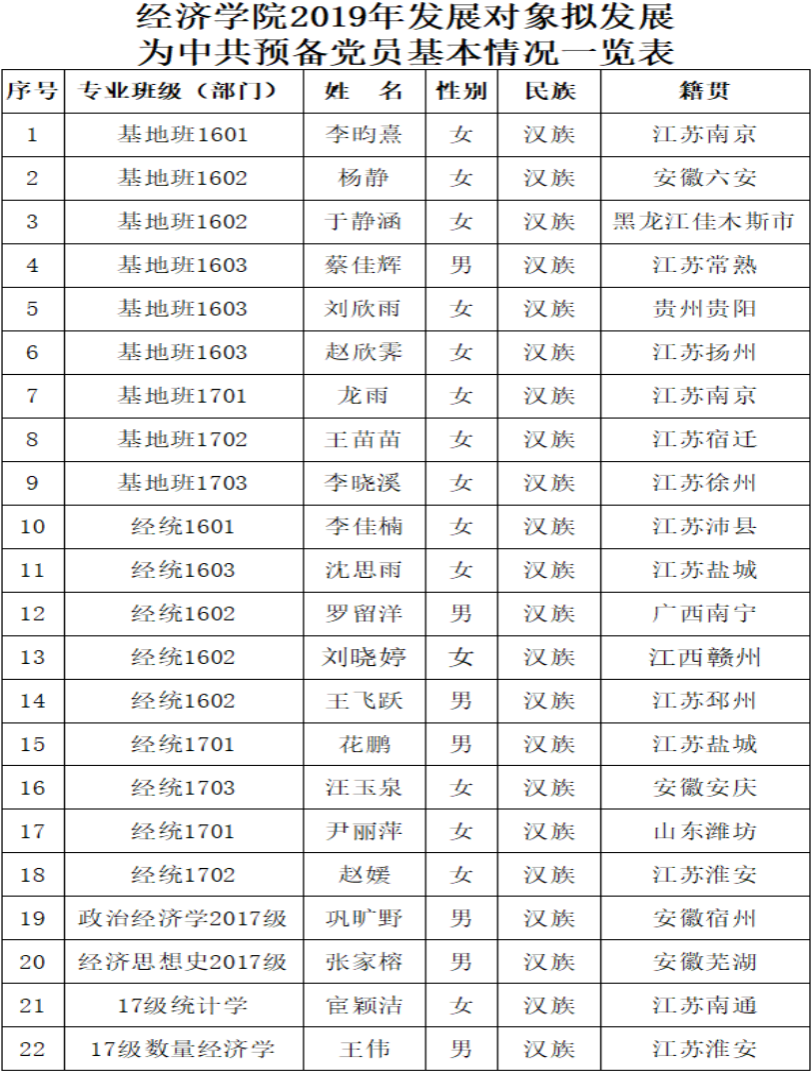 根据《发展党员工作实施细则》有关规定,经公司基层党支部考察、公司党委预审,拟接收李昀熹等22名同志为中共预备党员。现将名单予以公示: