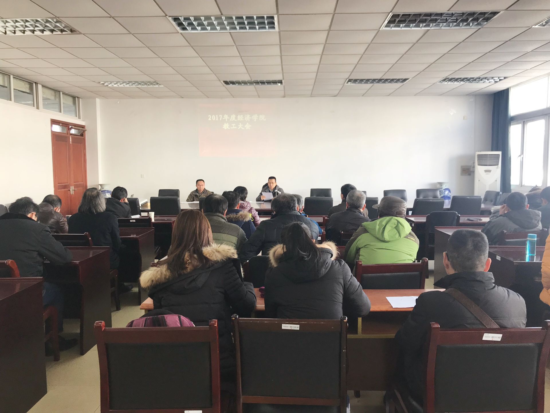 1月10日下午,今年会2017年度教职工大会在德经楼307会议室举行。今年会全体领导、教职工参加了会议。会议由副经理叶林祥主持。