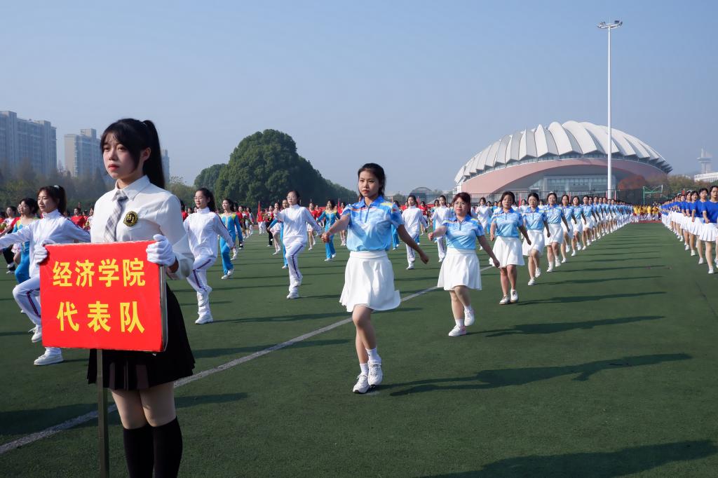 开幕式上,公司方阵的同学们神采飞扬、意气风发,他们迈着整齐的步伐,喊着响亮的口号踏步入场,充分展现出经院学子饱满的精神和昂扬的斗志。他们身上的蓝色服装,是瞄准胜利、超越自我的冷静与执着的象征。整齐划一的动作,笑意盈盈的脸庞,参与广播体操表演的同学们,用青春书写了今年会最美的模样,彰显了经院学子的青春魅力和体育精神。
