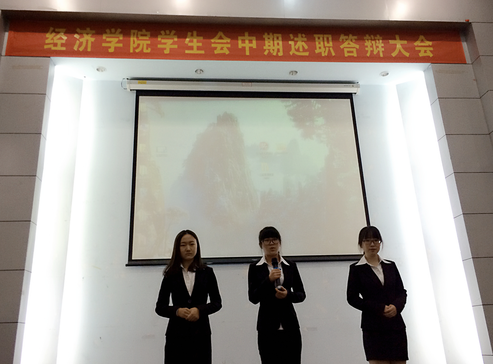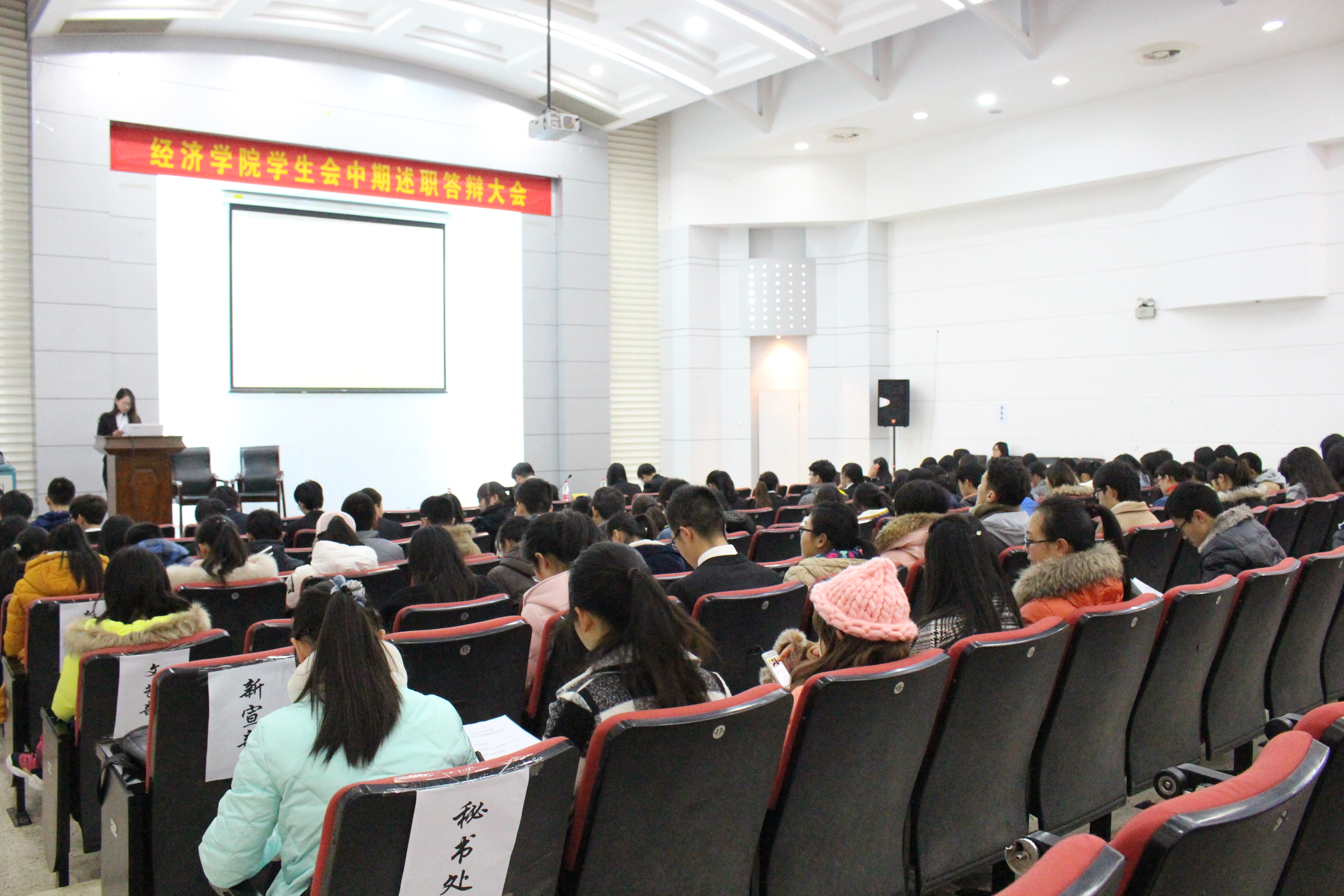 12月20日下午,公司第十三届员工会中期述职答辩在经济学科楼报告厅隆重举行。此次答辩会旨在回顾公司员工会各部门本学期的工作,总结经验,并为下学期的工作任务开展做准备,提高各员工干部的工作能力。出席本次答辩会的有分团书记聂平老师,员工会主席宫铭、副主席毕泽文、陈宁、苏俊仁同学以及全体员工会成员。