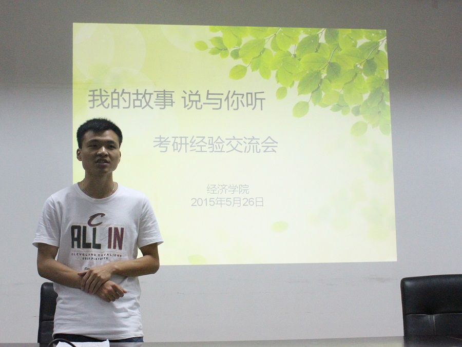 为给广大“研友”提供考研方面的帮助,公司在 5月26日晚于经济学科楼307会议室举行了“我的故事,说与你听”青春故事分享会(考研专场)的活动,本次活动邀请了大四的三位学长学姐参加,分别为丁超超同学、徐韵琨同学和张绍依同学。