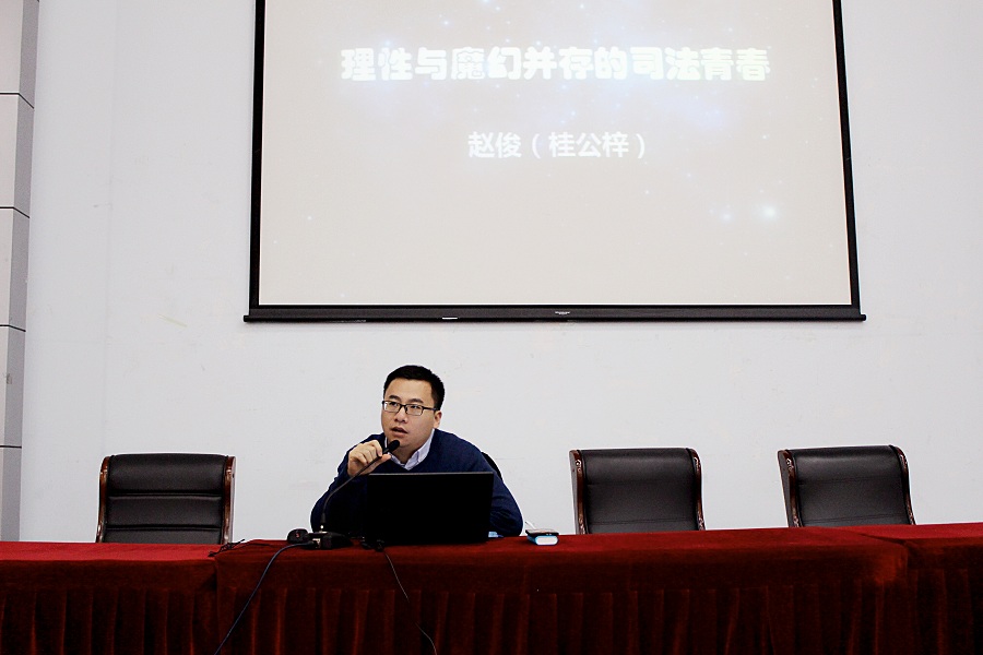 12月1日晚,应公司邀请,江苏省高级人民法院法官、作家赵俊先生在公司仙林校区经济学科楼报告厅作了题为“理性与魔幻并存的司法青春”的讲座。公司部分师生到场聆听讲座。