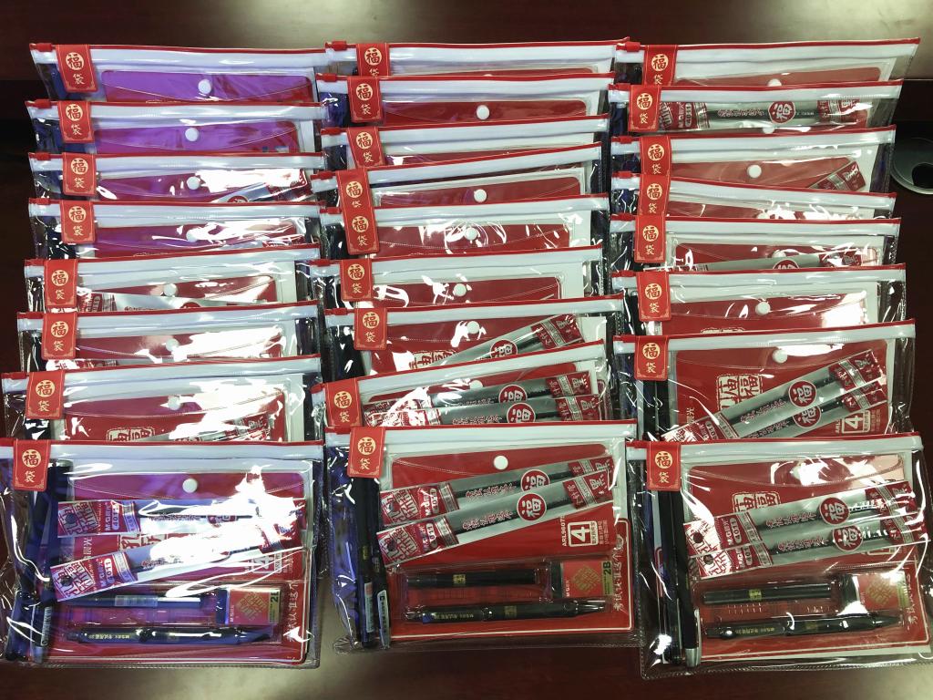 随后,党委副书记袁怡琨和辅导员廖瑛亲手为每一位同学送上公司精心准备的考研文具福袋,带去全院老师和学弟学妹们对考研学子的祝福和关爱。
