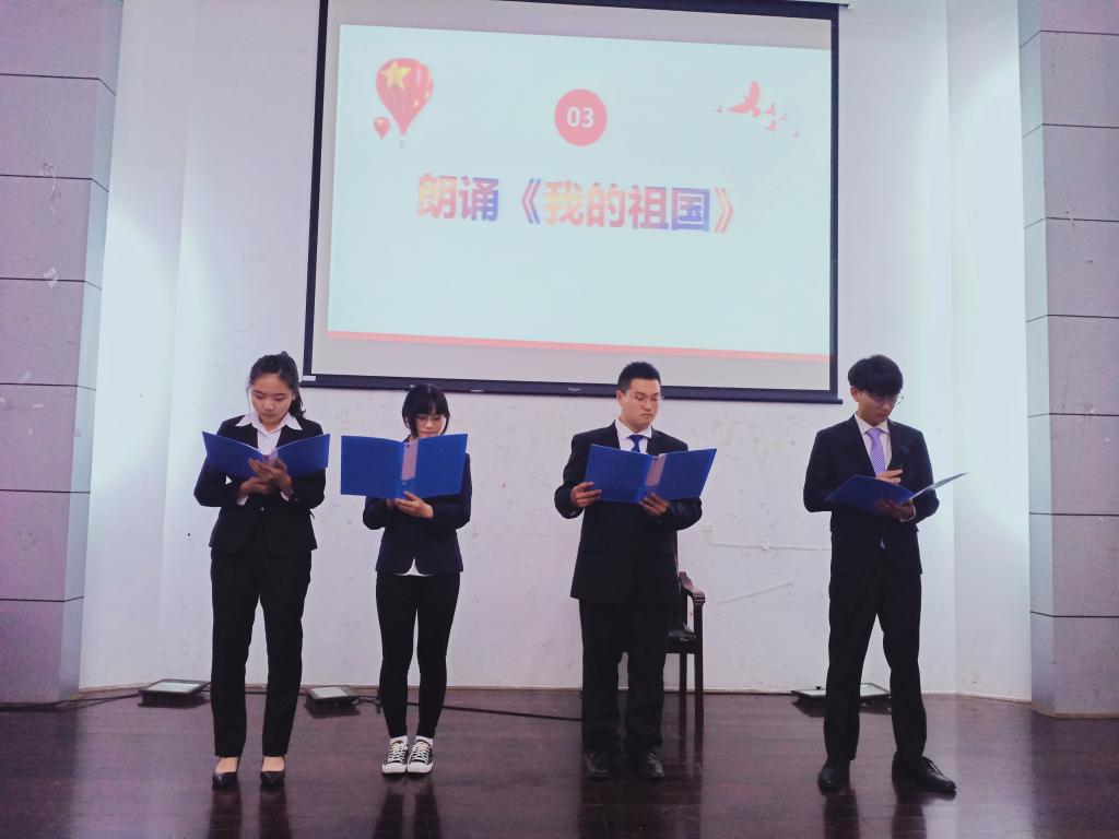 接着,员工会对外交流部社联组带来了诗歌朗诵《我的祖国》。他们用铿锵有力的话语向我们昭示了当代青年对我们伟大祖国的热爱,以及流露出对祖国发展日新月异的自豪感。
