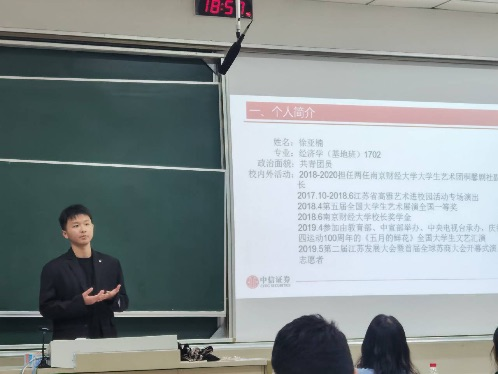 接着,徐亚楠学长介绍了自己选择就业这条路的心路历程。选择很重要,如果一开始不能明确自己要走哪一条路,那一定要学会给自己留后路。她强调了老员工做职业生涯规划的重要性。他以秋招形式,秋招流程为引展开关于就业背景的讨论,并结合自身在求职时的经历,为大家分享了求职过程中在简历制作、面试技巧、发展前景等方面的经验技巧。分享申请中信证券职位与面试中的经验,提出要注重信息收集,不要错过一些重要的时间点和一些申请机会。另外他告诉同学们,招聘机会也不局限在校内,还可以尝试通过自己了解到的渠道去获得。除此之外,叮嘱学弟学妹们要会调节情绪,不要长时间陷入焦虑,鼓励大家要更加自信,做好自己,同时还应积极尝试,不要畏惧失败,抓住一切存在可能性的机会。