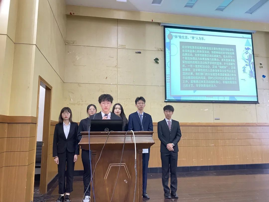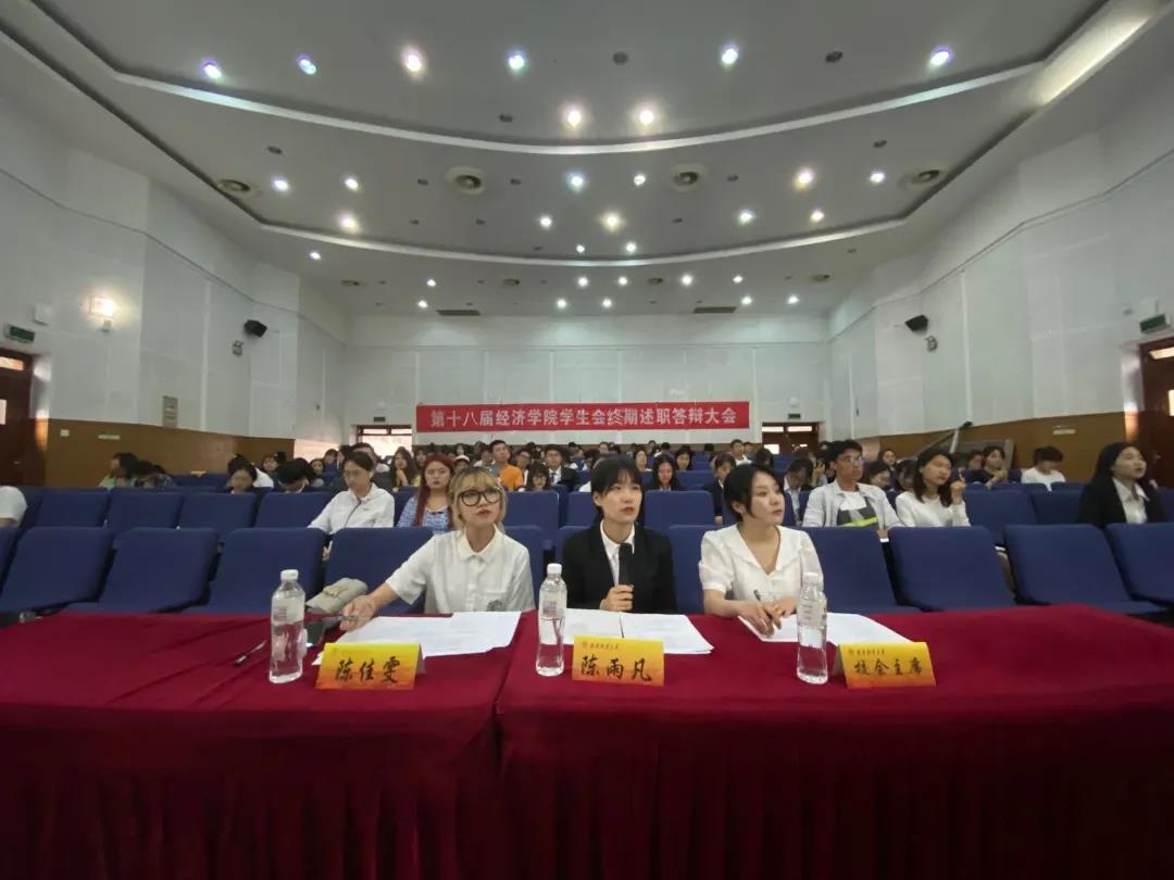 各中心述职答辩环节中,各中心进行为期五分钟的述职报告,报告内容包括以PPT的形式展示本部门一年的工作情况,总结工作得失,结合自身部门特点,向在场的员工会成员分享工作经验,认真分析部门存在的问题并表达了对下一阶段部门工作不断完善的期望。报告结束后,由主席团提出这一年工作中存在的问题,各部长进行限时答辩。中场休息环节,各中心的志愿者们分别以趣味小视频、诗歌朗诵、说说心里话的方式,回忆了在员工会充实快乐的时光,表达了对各中心部长及成员团结协作、友爱共进的感谢,员工会大家庭的美好祝愿。