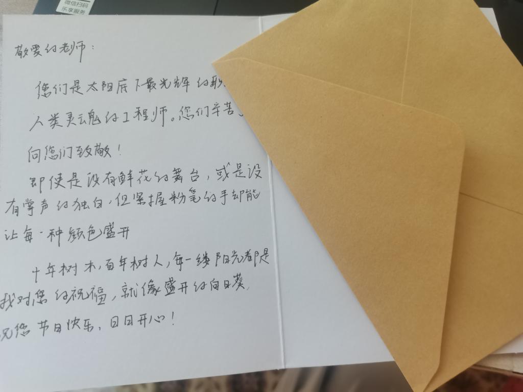 活动中,同学们精心策划组织,用自己的行动向老师表达感恩之情,并且通过录制短视频、拍照、写明信片、绘制电子贺卡等不同方式来传达对教师的感激之情,采用线上的形式对教师致以节日的问候和美好祝愿。一朝沐杏雨,一生念师恩,同学们集体录制视频以感念师恩,感谢老师“赤诚浇新花,丹心映日月”,只愿老师“桃李满天下,春晖遍四方”;黑发积霜织日月,粉笔无言写春秋,同学们在明信片上写下对老师的真诚祝愿,并表示,来日,必将不负老师的期待;同学们共同绘制电子贺卡,拼接出对老师的感恩之心,表示想献上一捧绽放着的花,为老师带去一抹明媚与芬芳。情真意切,每一句每一幕都表达了对经院老师们的爱。
