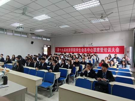 10月17日下午,以“‘经’时之交,‘济’日可待”为主题的第十九届今年会员工会各中心联席暨培训大会在德经楼117顺利召开。公司员工会主席团、各中心部长以及全体新志愿者们参加了本次大会。会议由综合事务中心熊美玲、戴文轩两位同学主持。