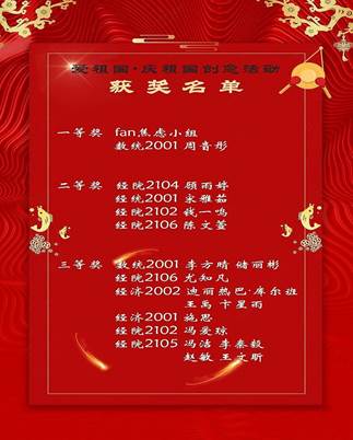 为弘扬爱国主义精神,丰富节日期间校园文化,营造欢乐祥和、和谐文明的节日氛围,我分团委于10月1日至3日鼓励各团支部开展了内容丰富、形式多样的“爱祖国、庆祖国”国庆创意活动。公司2021级、2020级同学参加了此次活动。