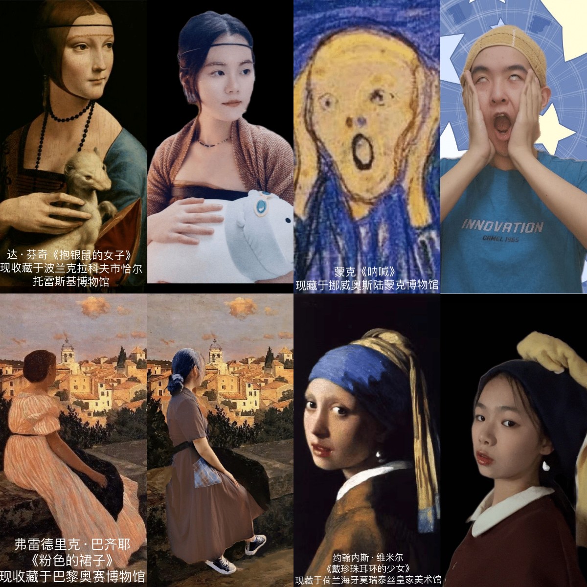 博物馆是保护和传承人类文明的殿堂,是毗连过去、现在与未来的重要桥梁,同学们结合自己对名画和生活的理解,探索、改造和创新出名画的“新篇”,不管是神情、服装、背景还是道具都让人耳目一新,在模仿名画的服饰、动作、表情、道具、背景、色彩和拍摄角度中品味经典艺术的魅力,向美术经典致敬。随着活动形式不断推陈出新,博物馆的历史文化体验和教育意义的价值也将被不断放大。