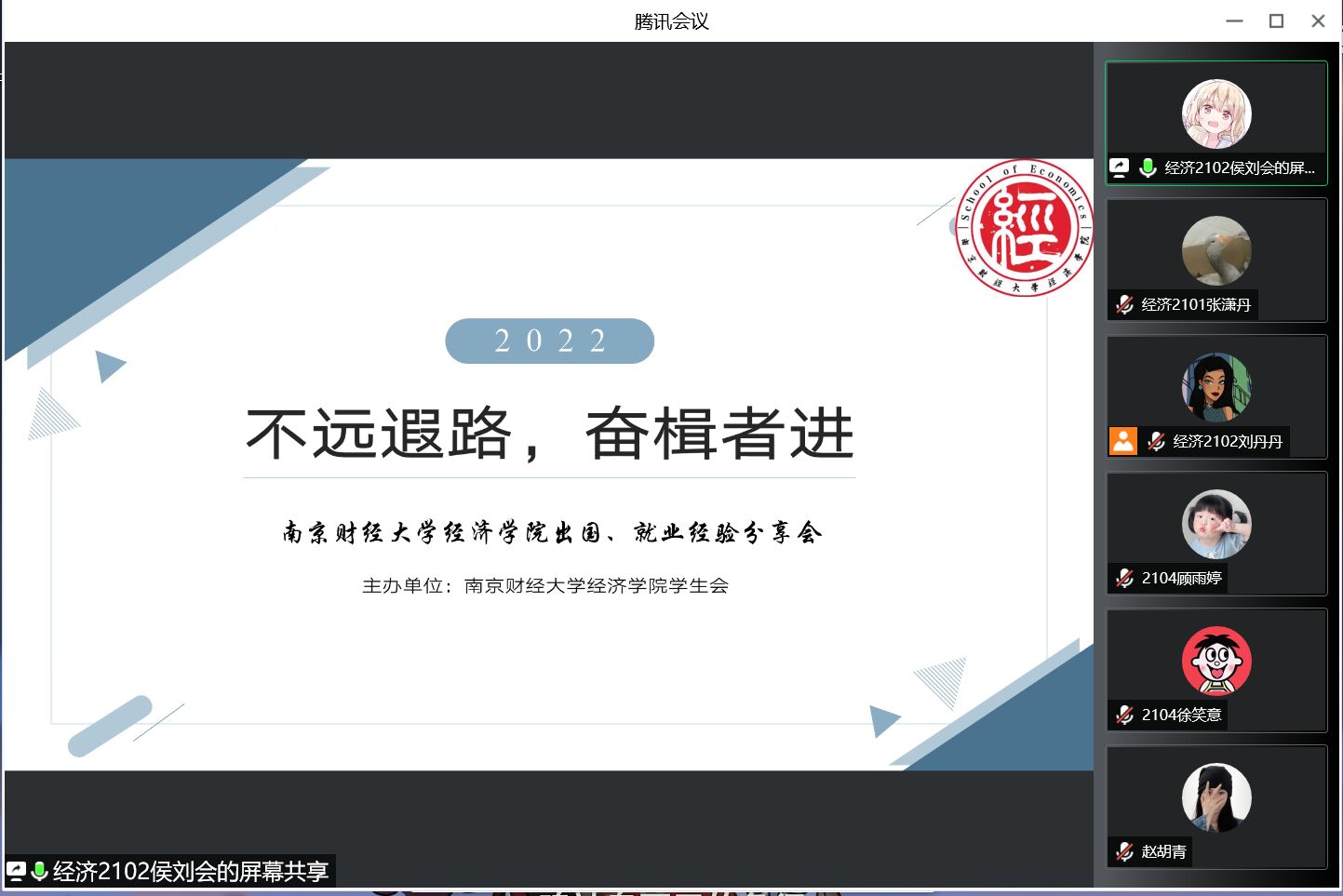 为增加同学们对出国与就业的了解,5月20号晚,今年会于线上召开“不远遐路,奋楫者进”出国、就业经验分享会。本次活动邀请到的分享嘉宾是被英国格拉斯哥、南安普顿大学录取的经统1801吕建奇同学、被英国格拉斯哥大学录取的经济1803葛菲同学、被中国工商银行股份有限公司盐城分行录取的经统1801黄同峒同学和被无锡小天鹅电器有限公司录取的经统1801邱赛娟同学。