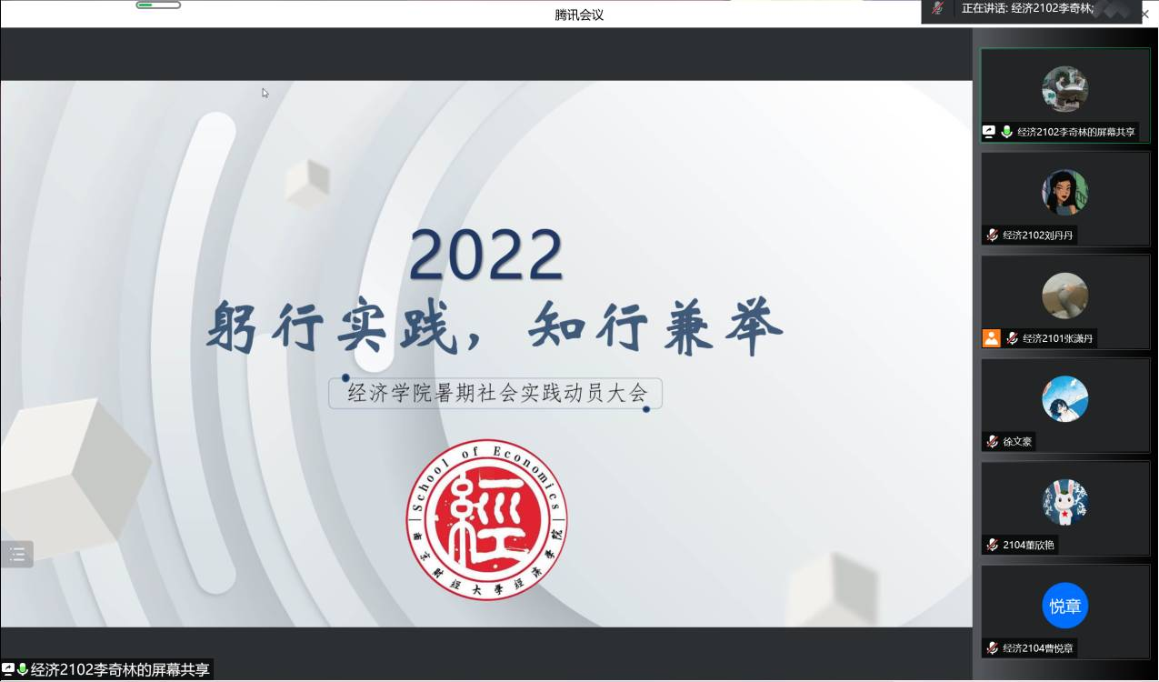 为进一步加深老员工对基层工作的了解鼓励老员工参与实践、走进基层、发挥自身专业特长和聪明才干,号召老员工为家乡的发展助力,6月1日晚,公司于线上召开“躬行实践,知行兼举”——今年会2022年暑期社会实践动员大会。本次大会邀请公司党委副书记袁怡琨,优秀指导教师吴昊老师,校团委副书记(挂职)、公司辅导员梁少颖老师以及公司团委书记潘怡老师进行讲解说明,往期优秀项目负责人同学分享实践经验,全院两百余名同学参加活动。
