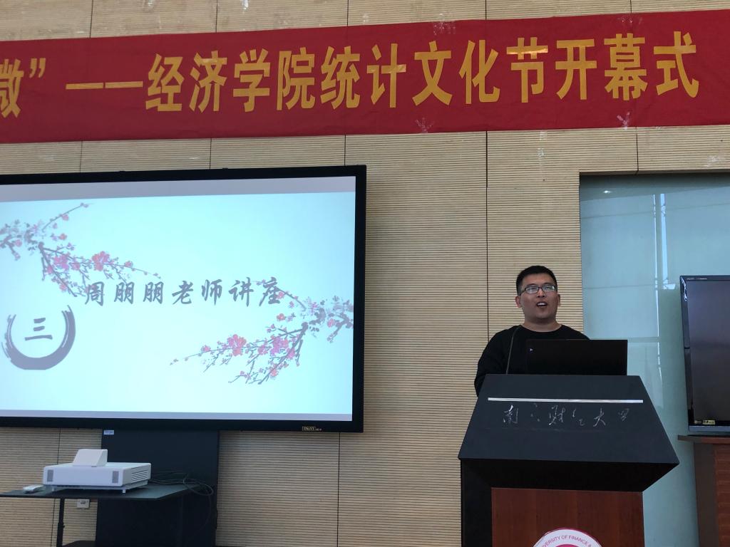 开幕式后,周朋朋老师作了统计文化节首场讲座,带领同学们认识统计学、走进统计学、挑战统计学、玩好统计学。他以三个问题出发,围绕“统计的起源”“统计的定义”“统计的用处”三个方面的内容,结合具体事例,用生动幽默的语言讲述了统计学的重要性、学习统计学的方法,激发了同学们对统计学的兴趣的同时,也帮助大家对统计专业有了更深刻了解。最后的互动答疑环节,周朋朋老师就部分同学提出的关于统计如何让工作有效、学习统计后的就业方向等问题做出了详细的解答与细致的指导。