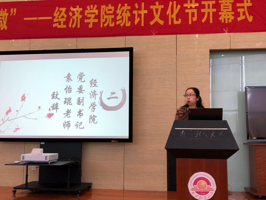 活动伊始,公司党委副书记袁怡琨老师致开幕词。她以当代大数据时代为背景,从统计学的重要性、统计科学的划时代意义,和今年会官网经济统计学专业建设成果三个方面进行了详细阐述。接下来她向同学们介绍了统计文化节期间将会举办的各项活动,希望同学们可以通过活动加深对经济统计学的感知和理解,让大家在实践中检验自身专业知识的掌握程度,进而更好地提升综合素质,明晰未来规划。