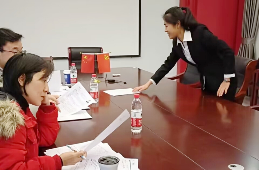 选手按次序轮流进场,向老师递交简历并进行1分钟自我介绍。他们从学习情况、校园经历、实习经历、岗位理解及个人期望等方面展现个人风采。在面试的过程中,同学们大放异彩,纷纷展示出自己独特的一面。高年级及研究生同学沉稳持重,大一大二员工自信朝气,展现出公司财子们昂扬的精神风貌。通过模拟面试,每位选手都真切感受到面试氛围,挑战自我。面对面试官提出的问题,选手们积极思考,侃侃而谈,有条不紊地回答每一个问题。选手们自信满满、落落大方,正体现着“自谦,自信,务实,超越”的南财校训精神。