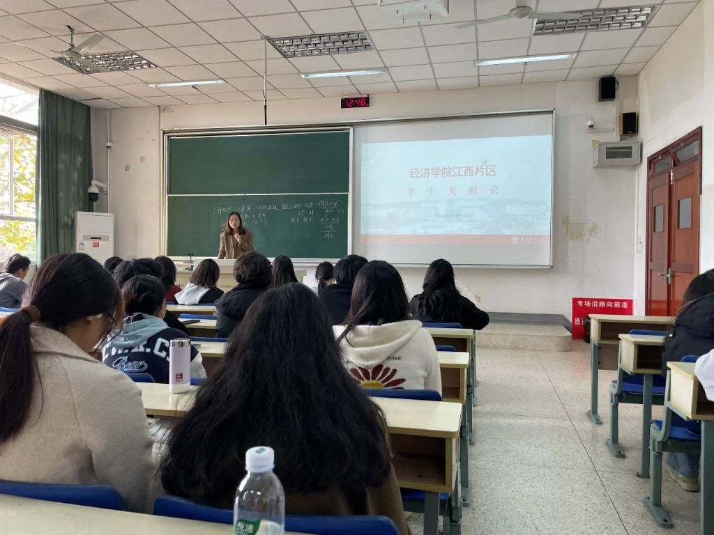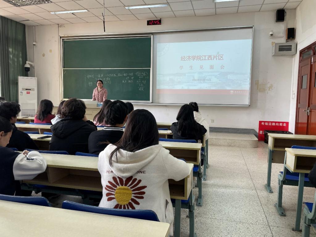 公司党委副书记贾亦璞老师介绍了公司在江西和徐州地区的生源基地建设情况和历年来公司取得的招生成果,同时对下一阶段公司的招生工作做了相关的布置和安排。贾书记指出:“公司招生宣传工作取得的成绩离不开每一位片区同学的努力,期望同学们能做好南财和高中母校之间的桥梁,为高中母校的同学传递更多南财的信息,也为南财招收到更多的优质生源”。