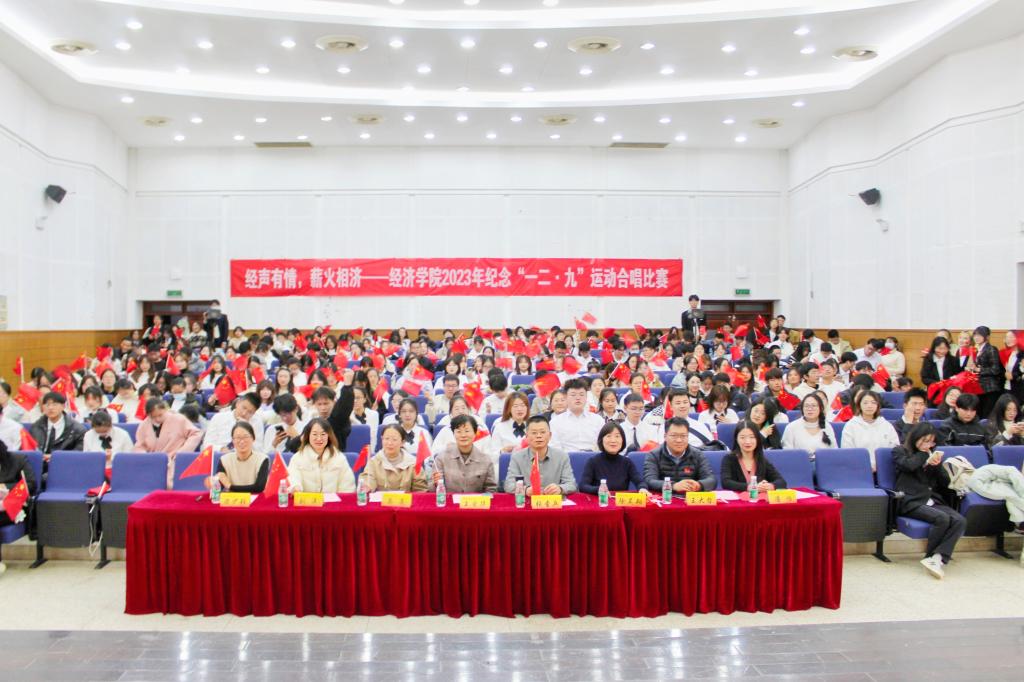 经济2301班用《我和我的祖国》唱出了历史的车轮滚滚向前,唯一不变的是那根植在每个中国人心中至真至深的家国情怀。经济2302班用《家国》点燃现场氛围。仰望历史的天空,家国情怀绵绵不断;跨越时间的长河,家国情怀熠熠生辉。无论是战火纷飞,亦或是四海升平,我们始终坚信:有国,才有家。经济2303班带来的《少年中国说》不仅唱出少年的初心是刺破迷雾的星火,少年的志向是澎湃的春潮,更呼吁着中华少年顶天立地当自强,以吾辈之青春护我盛世之中华。经济2304班将《如愿》中传递的亲情和情怀唱进同学们的内心。一叶红船于南湖启航,驶过惊涛骇浪,越过激流险滩,终成长为一艘巍巍巨轮,中国革命之路已然如愿。掌舵凌波,行稳致远,中国百年之梦,也必将如愿!经济2305班唱响《我爱你中国》,我爱你中国,爱你的海晏河清,也爱你的饱经沧桑。情真意切,语言难述。长河滚滚,是你的血脉所系,山峦错落,是你的脉搏起伏。经济2306班以《万疆》唱出对祖国的热爱。你可曾看见,青藏高原上的雄鹰展翅翱翔;你可曾看见,呼伦贝尔草原上的绿浪层起更迭。目光所至皆为华夏,五星闪耀皆是信仰。理论经济23级研究生带来了歌曲《少年中国说》,如果信念有颜色,那一定是中国红。十年饮冰,难凉热血。躬逢盛世,恣意风发。今日少年歌以咏志,清澈的爱只为中国。应用统计23级研究生一曲《如愿》让同学们抚今追昔,珍惜当下烟火寻常、山河无恙。悠久音符跳动,百年光影流疏,几代人艰苦卓绝,谱写民族奋斗之乐章。寒来暑往,朝辞暮至,山海皆可平,岁月不相隔。如先辈之愿,大河洋洋,山高水长。