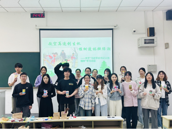 活动伊始,主持人结合今年世界地球日的主题“全球战塑”进行讲解介绍。塑料制品在给人们的生活带来便利的同时,也带来了严重的环境问题。目前,在全球已经产生的70亿吨塑料垃圾中,只有不到10%的塑料垃圾被回收。在场同学认真观看资料,集中学习习近平总书记在出席首都义务植树活动的重要讲话精神,为建设美丽中国增绿添彩。