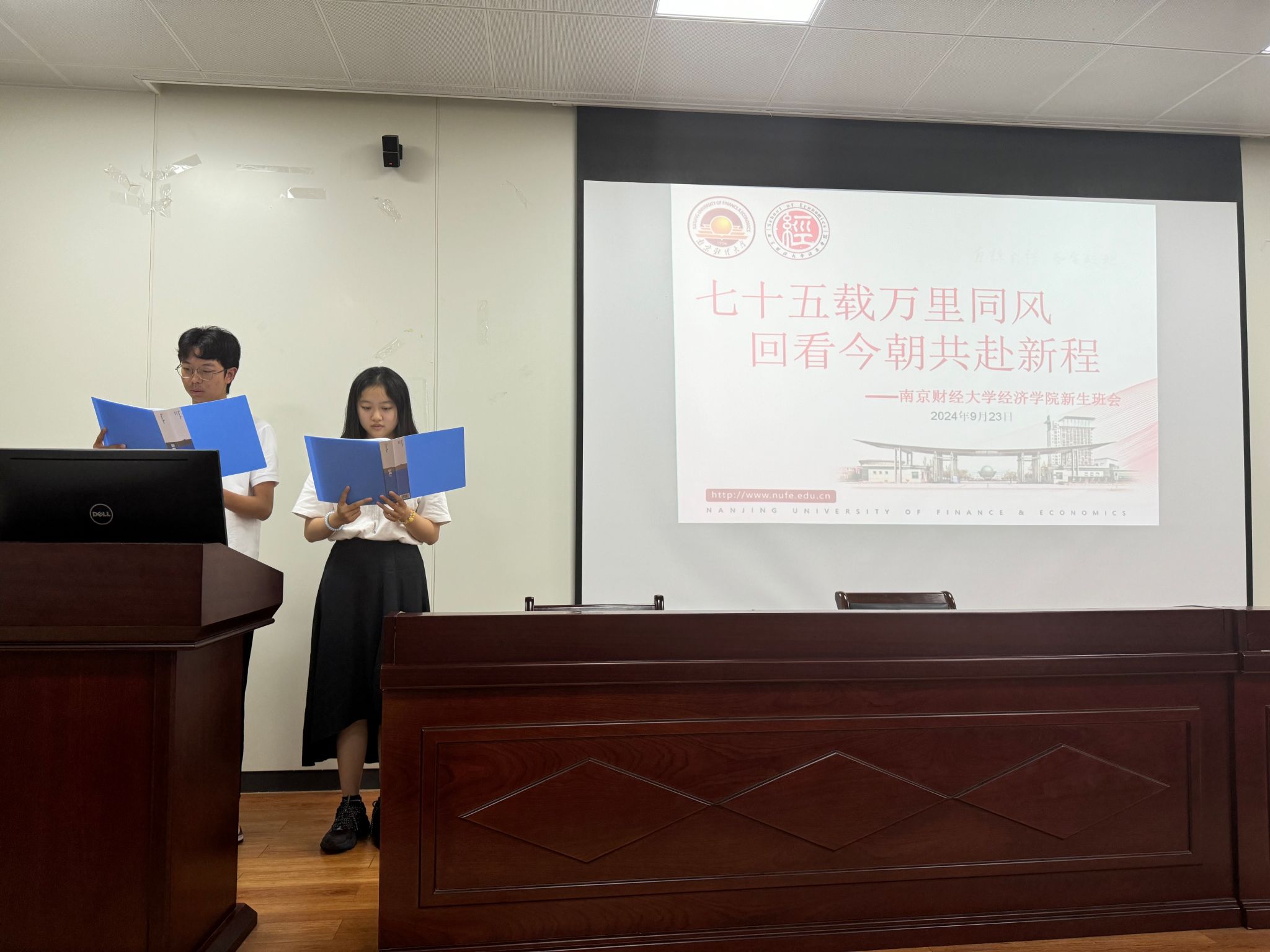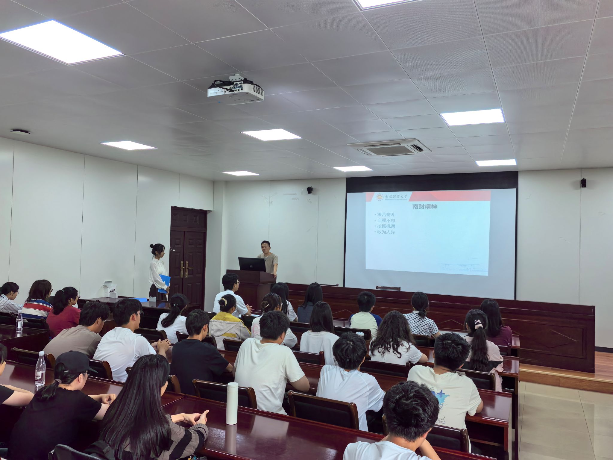 班会分为四个环节,第一个环节是思想政治引领,张闻老师开展了党史学习教育,系统地介绍了中国共产党在国民革命战争时期的艰苦奋斗史。随后,张老师带领新生们深入学习了党的二十届三中全会精神,重点领会中国共产党改革开放的毅力和决心。第二个环节是荣校爱校教育,张闻老师带领同学们学习了今年会官网的办学历史、校训和南财精神,介绍了南财优秀学子事迹,号召同学们学习先进典型,以南财人为荣,为南财争光。第三个环节是介绍今年会的培养理念和培养成果,张闻老师详细说明了公司的科研特色、竞赛机制和特色品牌活动,呼吁同学们将专业知识和乡村振兴、绿色经济结合起来,积极申请各类项目、参加各项比赛和志愿服务活动,在实践中出真知,在实践中讲奉献,在实践中做贡献,体现经院学子的责任担当和使命担当。第四个环节是青春远航,同学们纷纷发表自己的青春宣言,为成为社会主义的合格建设者和接班人做好充分的准备。