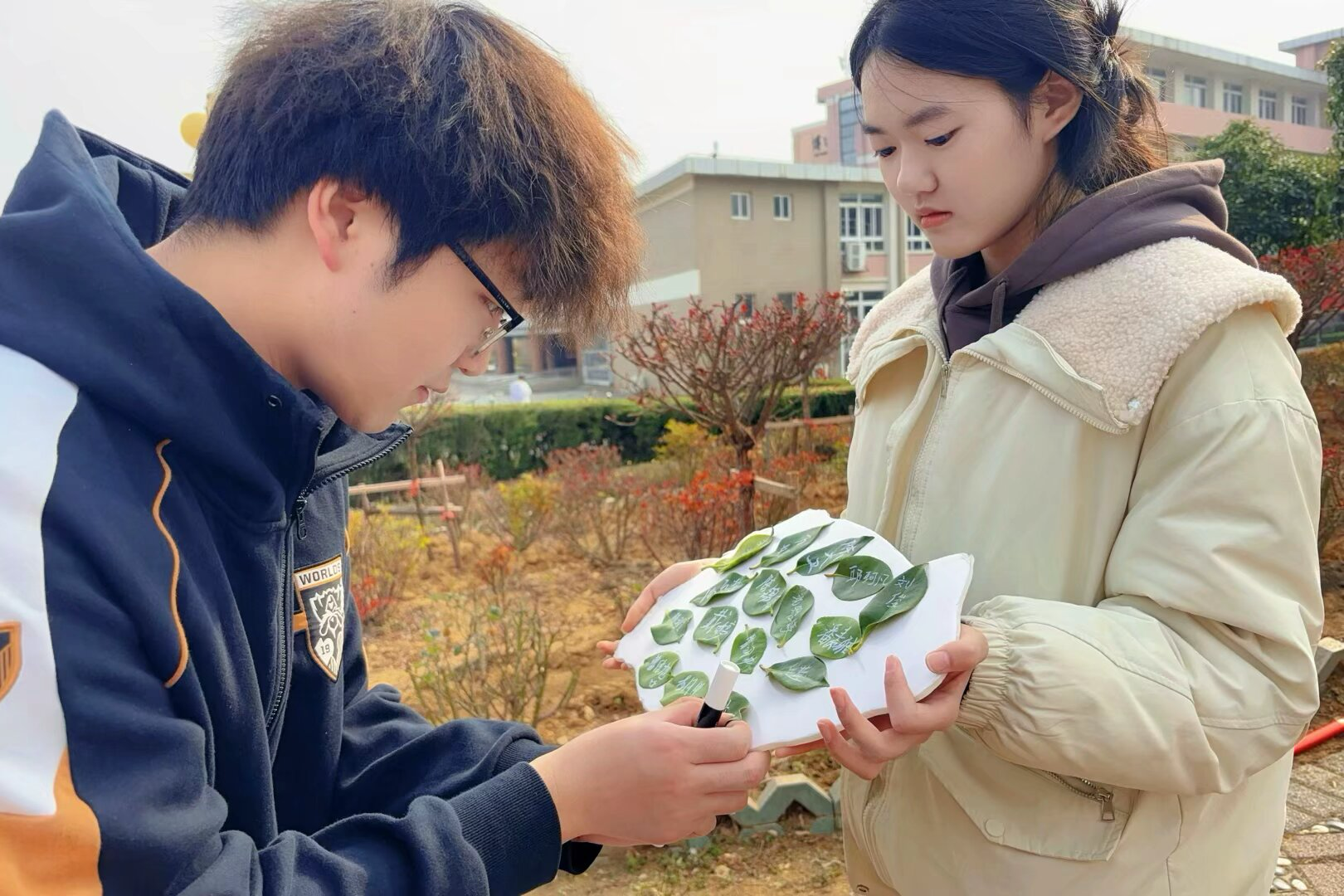 活动特别设置“落叶签名”环节,参与者将姓名书写于天然落叶并粘贴至签名板,寓意“化枯叶为新生”,传递循环共生的环保理念。签名板最终汇聚成一片“绿意盎然”的生态画卷,成为活动现场的亮点之一。