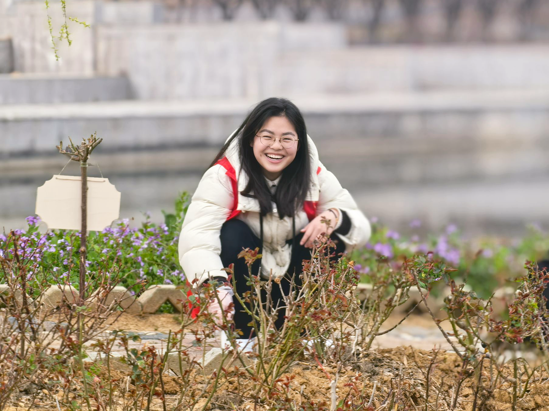 在专业园丁指导下,志愿者们分组协作,挥锹培土、扶苗定根、提水浇灌,共栽种月季、桂花等苗木。每株树苗均悬挂专属“心愿牌”,寄托着同学们对生态文明的祝福与期许。随后,志愿者们对园区杂草进行全面清理,确保新栽苗木获得充足生长空间。