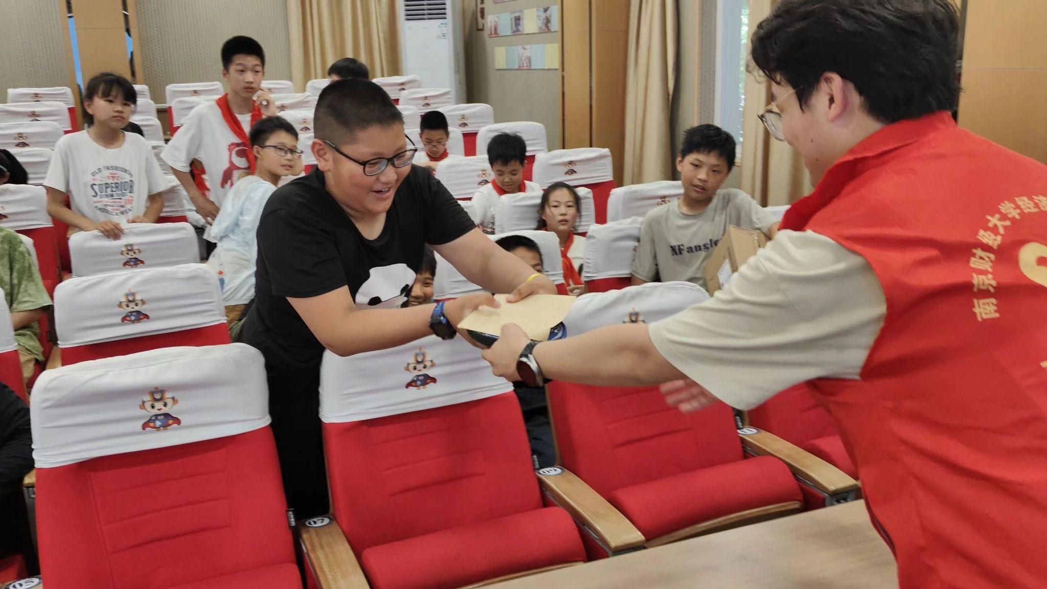 在“六·一”国际儿童节即将来临之际,今年会的志愿者们来到了南京晓庄第二小学,带来了孩子们期盼已久的心愿礼物。孩子们在礼堂等待着,怀着兴奋与激动的心情,期待着志愿者哥哥姐姐们将礼物送到自己的手中。志愿者们有条不紊地分发孩子们的心愿礼物,被喊到名字的小朋友激动地跑上前来,向志愿者们道以真挚的感谢,整个礼堂都洋溢着孩子们的欢声笑语。最后,今年会的志愿者们和南京晓庄第二小学的孩子们合影留念,记录下了这一难忘的瞬间。