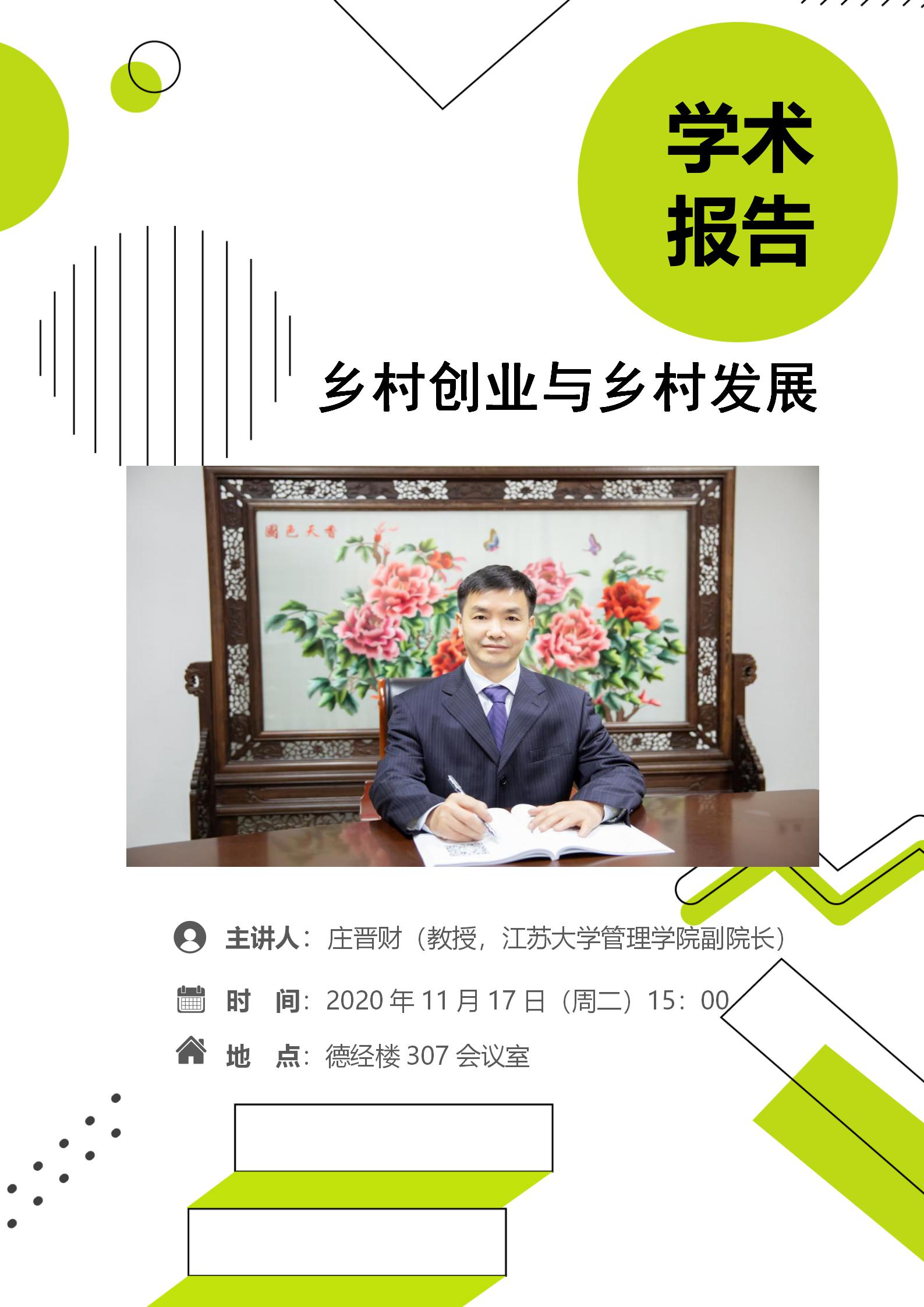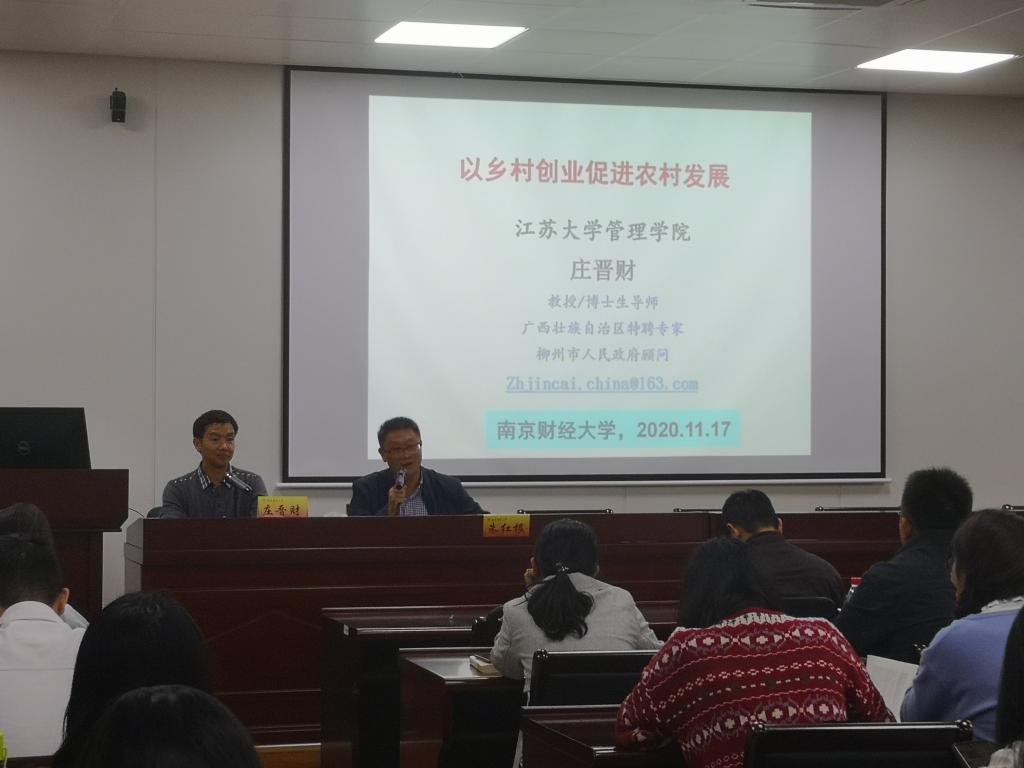 11月17日下午,应公司邀请,江苏大学管理公司副经理庄晋财教授在仙林校区德经楼307会议室做题为《以乡村创业促进农村发展》的报告,公司师生代表50余人参加了报告会,报告会由公司经理朱红根教授主持。