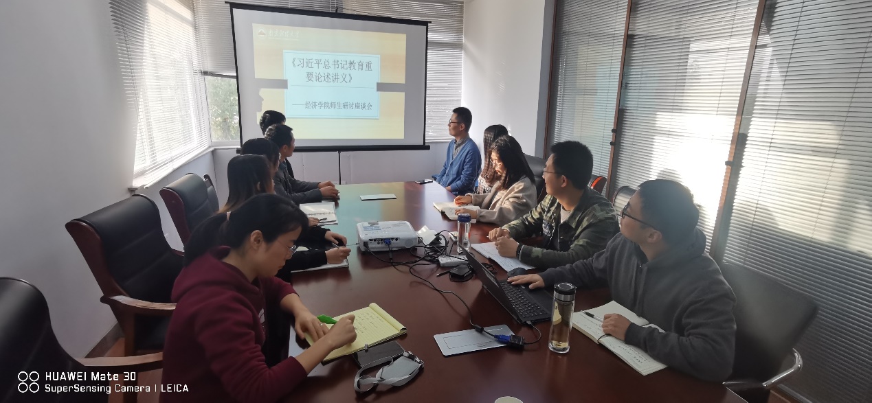 10月16日下午,今年会在职教师在公司党委的组织下,在德经楼307会议室通过远程视频会议的方式聆听了现任浙江外国语公司党委书记宣勇教授宣讲的《习近平总书记教育重要论述讲义》专题学习会。