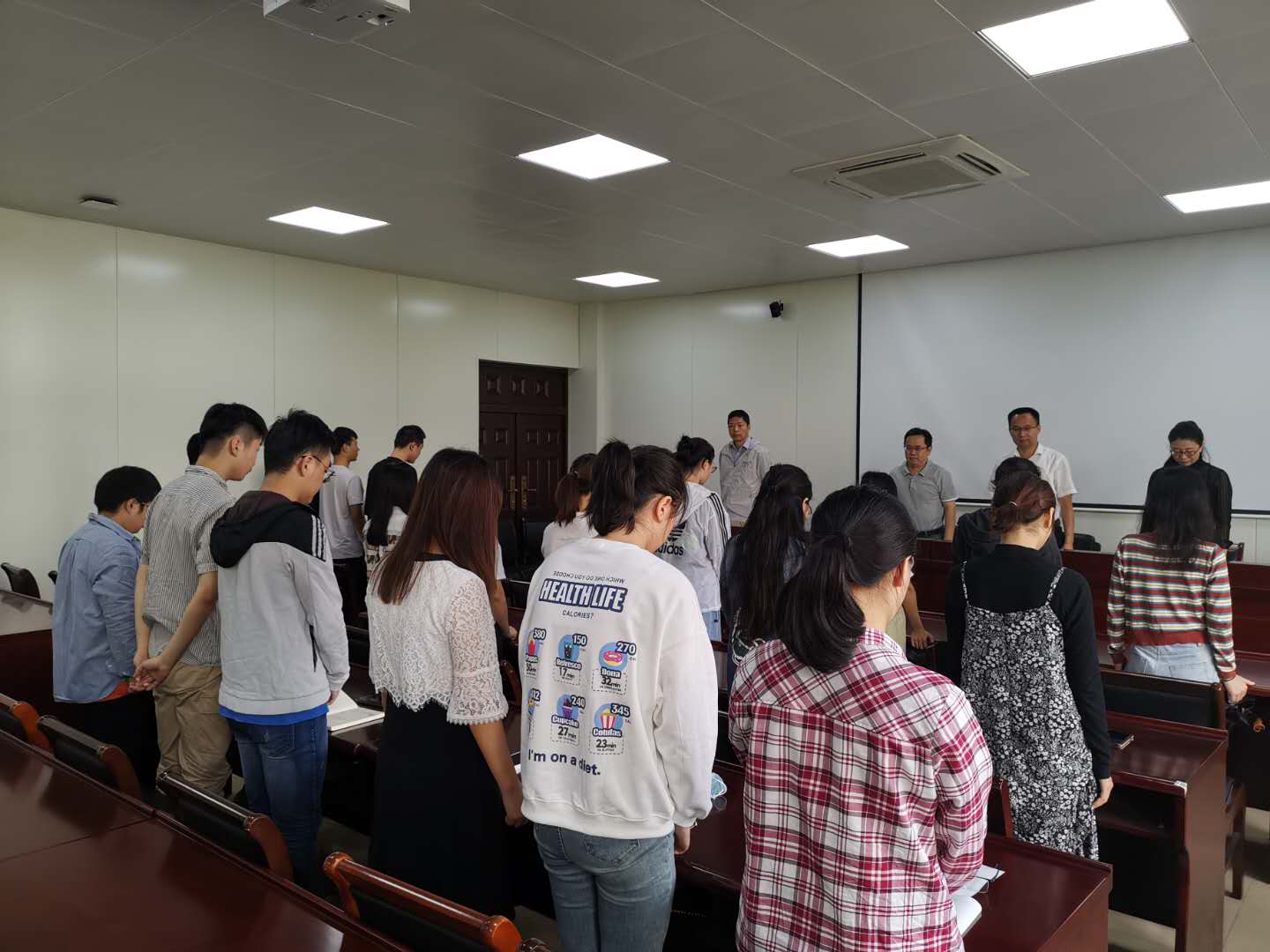 在见面会期间,10点整,南京市试鸣防空警报,参加见面会的全体师生起立默哀,感怀先烈、不忘国殇,见面会全体师生接受爱国主义教育。