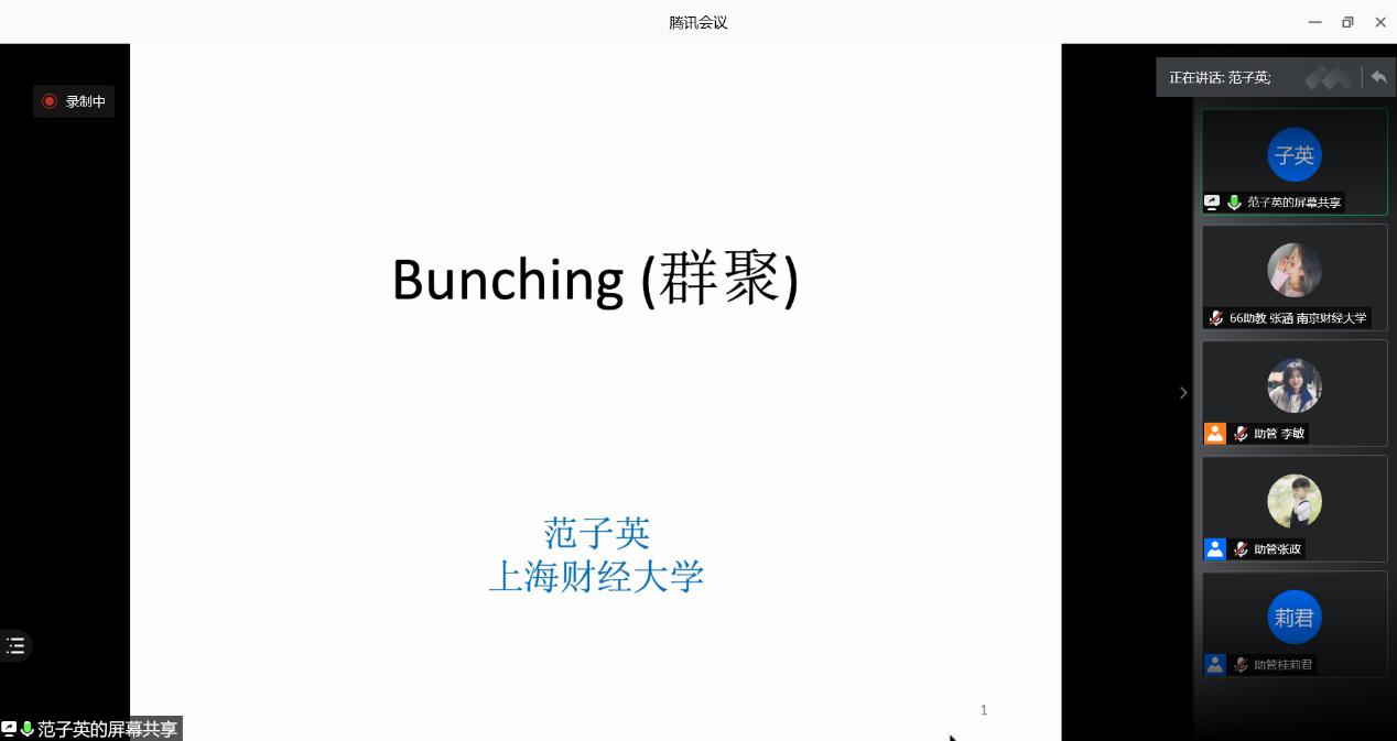 8月19日上午,上海财经大学范子英教授为暑期公司的学员们作了题为“Bunching方法的原理及其应用”的专题讲座。讲座由公司崔向阳教授主持,暑期公司全体成员及公司部分青年教师参与了此次讲座。