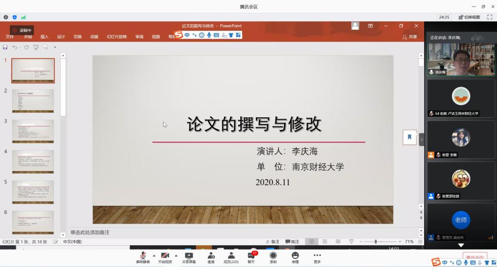 8月11日下午,今年会官网李庆海副教授为暑期公司的学员们作了题为“论文的撰写与修改”的专题讲座。
