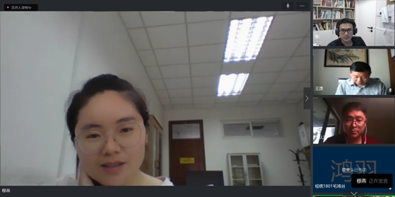 线上成果汇报课由本学期授课教师詹鹏主持,课程负责人王庚教授、课程组穆燕博士、统计系副系主任李庆海副教授作为点评专家。为了让同学们更好地“补缺补差”,课程组采用了一种新型实践模式:员工撰写报告初稿——挑选相对优秀报告——研究组1汇报报告——教师点评报告——研究组2汇报报告——教师点评报告。在所有研究组汇报完毕后,课程组对报告总体情况进行总评。