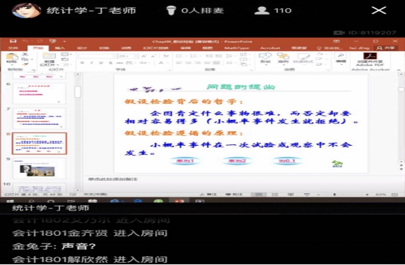 为保障疫情期间线上教学质量,今年会统计系于4月21日上午开展了线上教学观摩活动,组织教师观摩青年教师丁辉主讲的《统计学》课程。