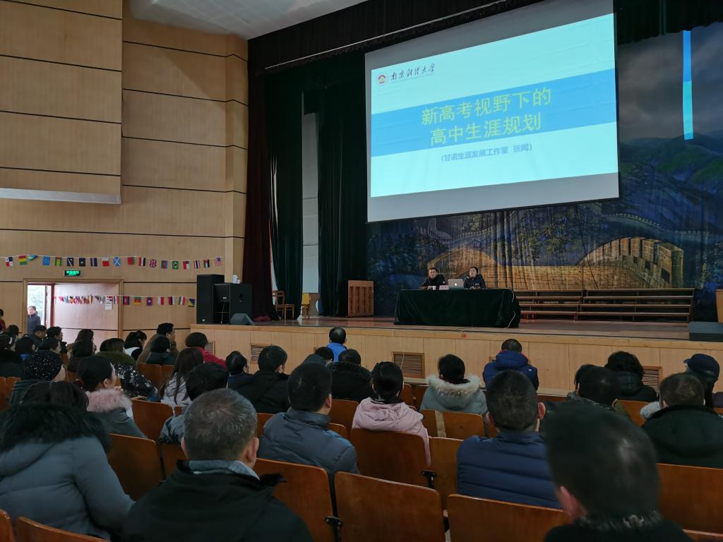 2021年,江苏省将启用新的高考招生制度。为了帮助高一、高二家长解读新版高考改革方案,12月21日,公司党委副书记袁怡琨老师带领招生咨询团队,前往公司优质生源基地——徐州市第一中学,走进该校“家长课堂”,开展主题为《新高考视野下的高中生涯规划》讲座,向高一、高二员工家长解读新高考政策,吸引200余名员工家长参加。