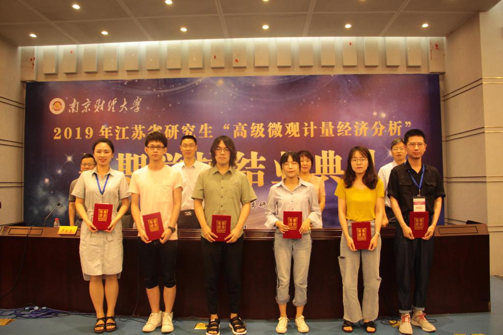 党委研究生工作部部长韩力争宣读《关于表彰2019年江苏省研究生“高级微观计量经济分析”暑期公司优秀成果的决定》。随后主席台领导为受表彰学员颁发了荣誉证书。