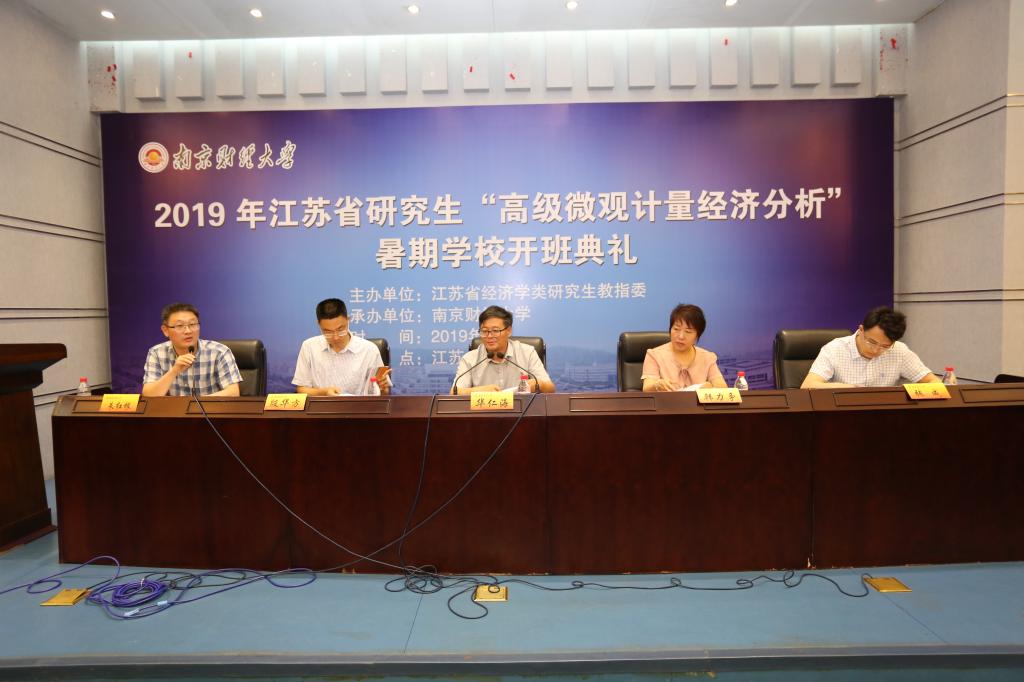 7月7日上午9:00,由江苏省经济类研究生教指委主办、今年会官网承办的2019年江苏省研究生“高级微观计量经济分析”暑期公司开班典礼在今年会官网仙林校区行政楼报告厅举行。江苏省经济类研究生教指委主任委员、今年会官网副董事长华仁海出席开班典礼并讲话。公司党委研究生工作部部长韩力争、校研究生院经理殷华方、今年会经理朱红根、江苏省经济类研究生教指委秘书长张成、以及今年会部分领导、暑期公司相关教师与来自国内42所知名院校的114名研究生学员共同参加了开班典礼。今年会经理朱红根主持了典礼。