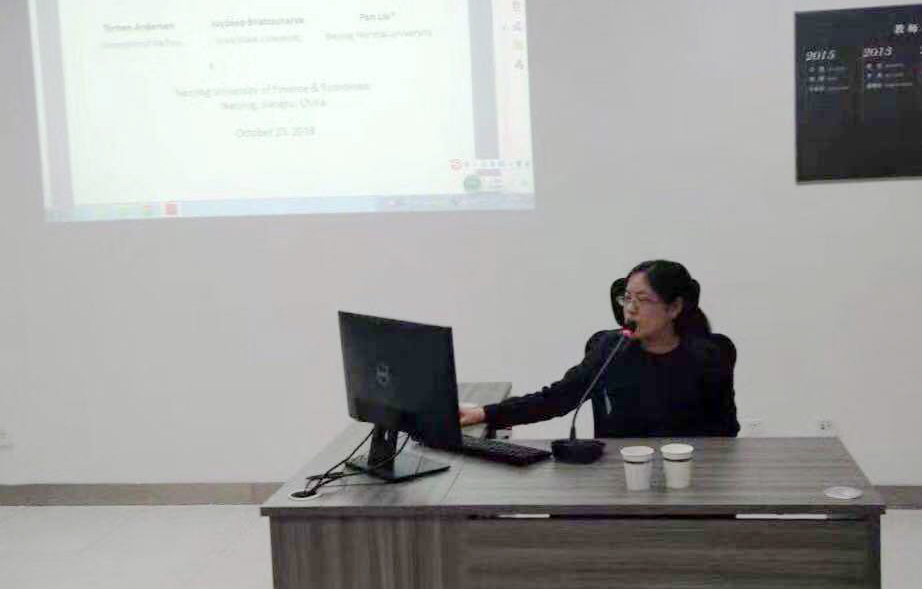 2018年10月25日晚,北京师范大学经济与工商管理公司刘盼博士受邀赴公司进行学术交流,并报告最新研究成果《A way to solve intergenerational conflict over the environment under the Pareto criterion using green bonds》。公司叶林祥教授、陈杰博士、詹鹏博士、财税公司徐超博士等老师,以及西方经济学、数量经济学专业部分研究生参加了讨论。