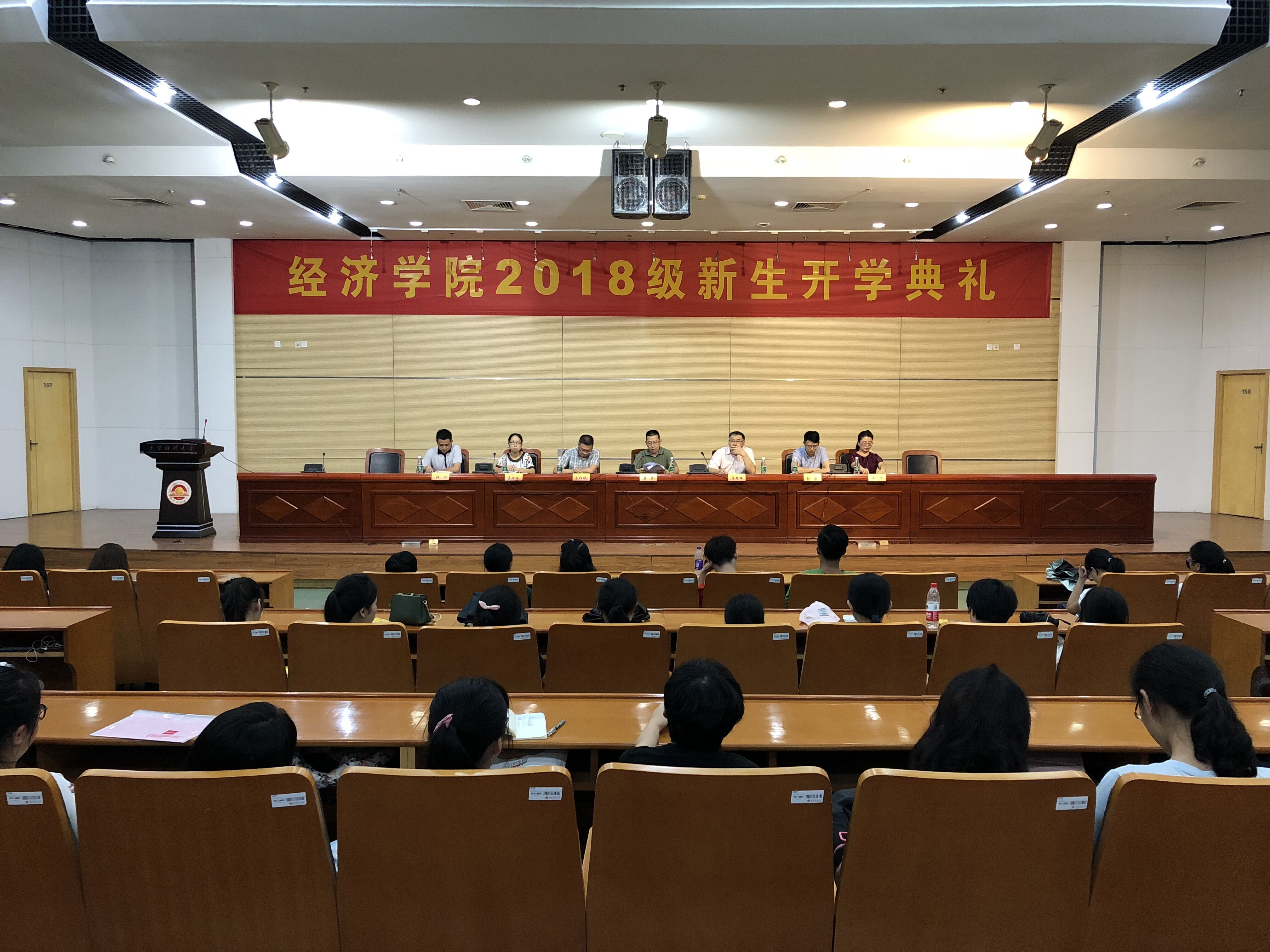 9月3日下午,图书馆报告厅座无虚席,公司2018级新生开学典礼在此举行。公司经理石奇,党委书记陈耀辉,党委副书记袁怡琨,副经理张成、朱红根,经济系主任周宁,统计系主任韩中等老师,公司2018级全体新同学出席了此次典礼。典礼由袁怡琨副书记主持。