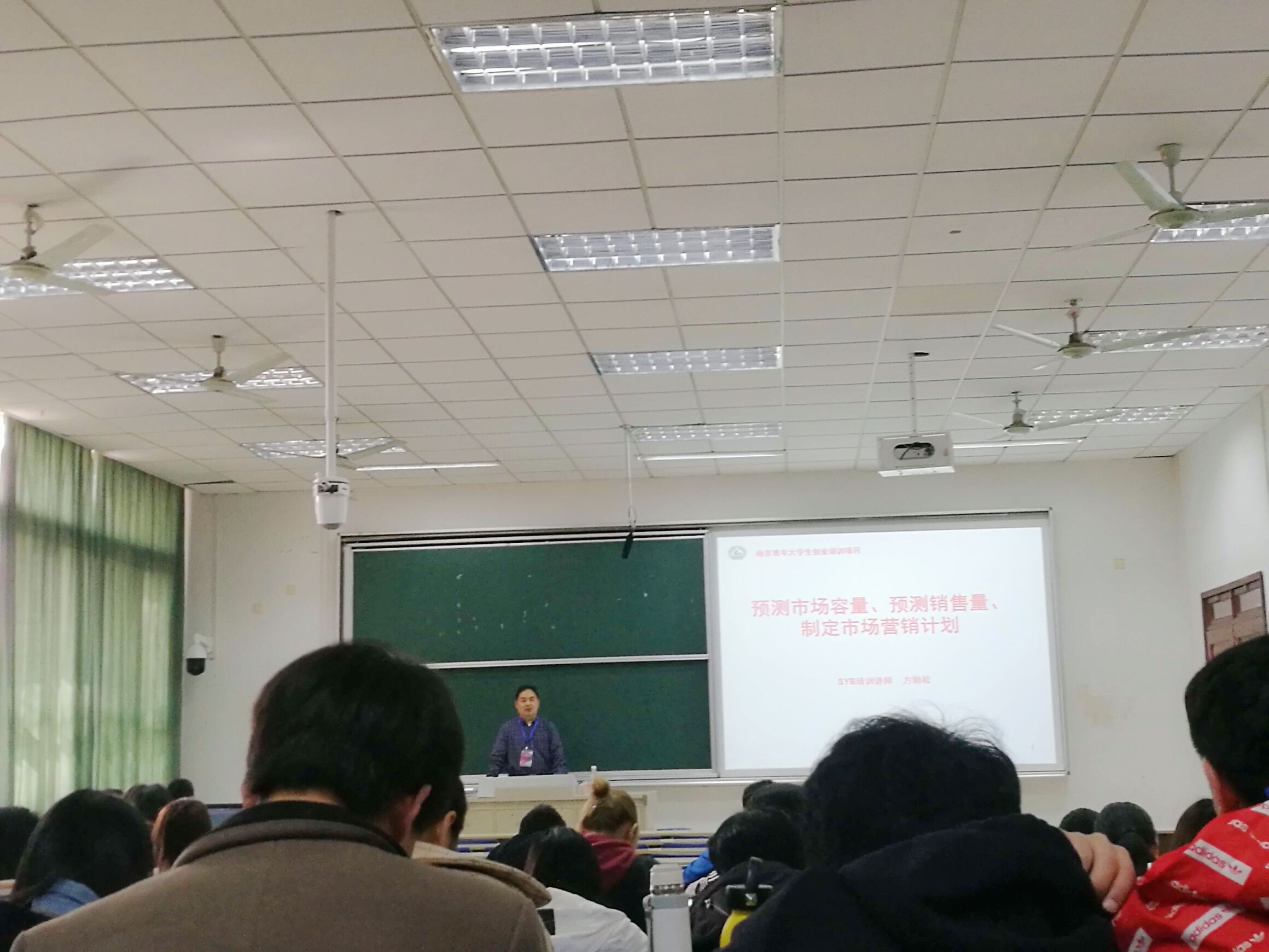 3月30日星五下午,公司院邀请创业指导专家、中邮通建设咨询有限公司培训中心主任方勤松老师,在德经楼103室给公司同学们开展了一场以“预测市场容量、预测销售量、制定市场营销计划”为主题的老员工创新创业培训讲座。
