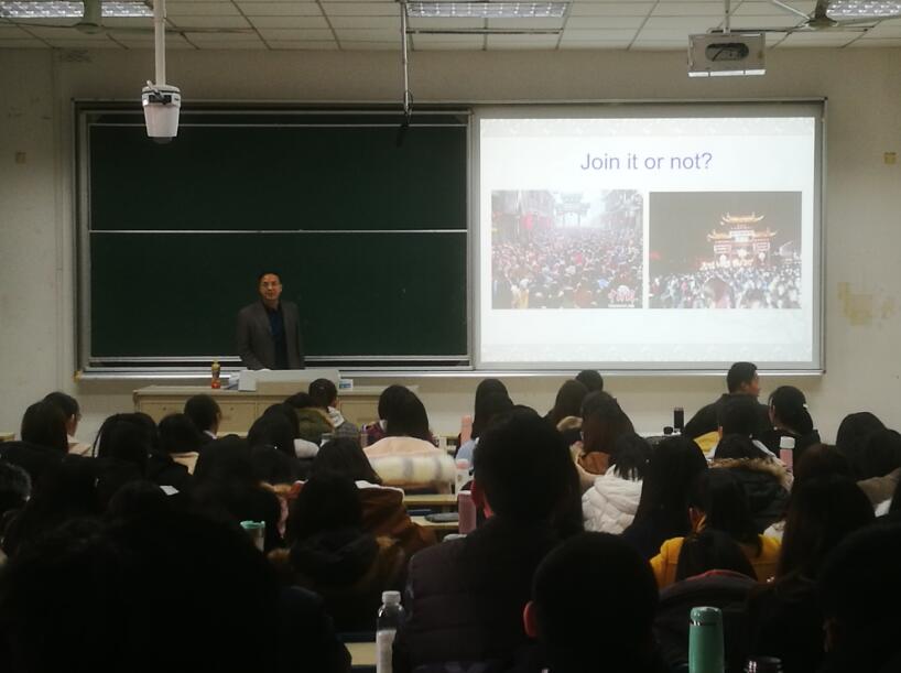 2018年3月2日下午,受公司邀请,南京市人社局直属南京市职业技术培训指导中心许宏报主任在德经楼103教室为2016级经济学专业同学带来“做好人生规划,适应职场发展”主题讲座。讲座由朱龙杰副教授主持。