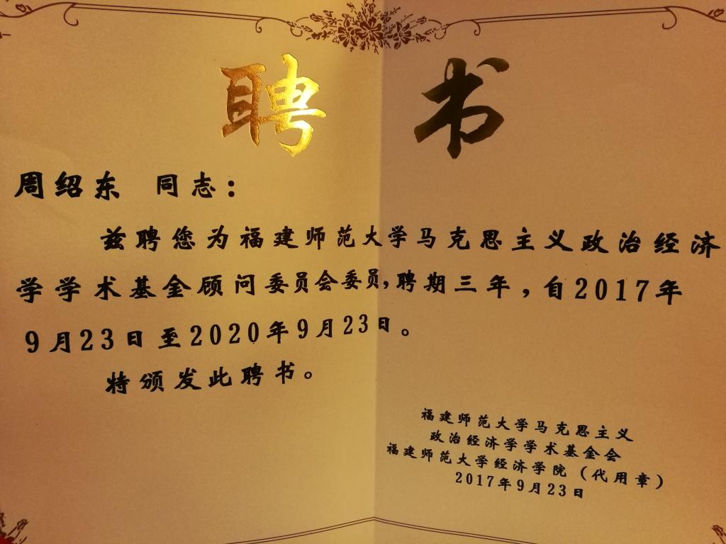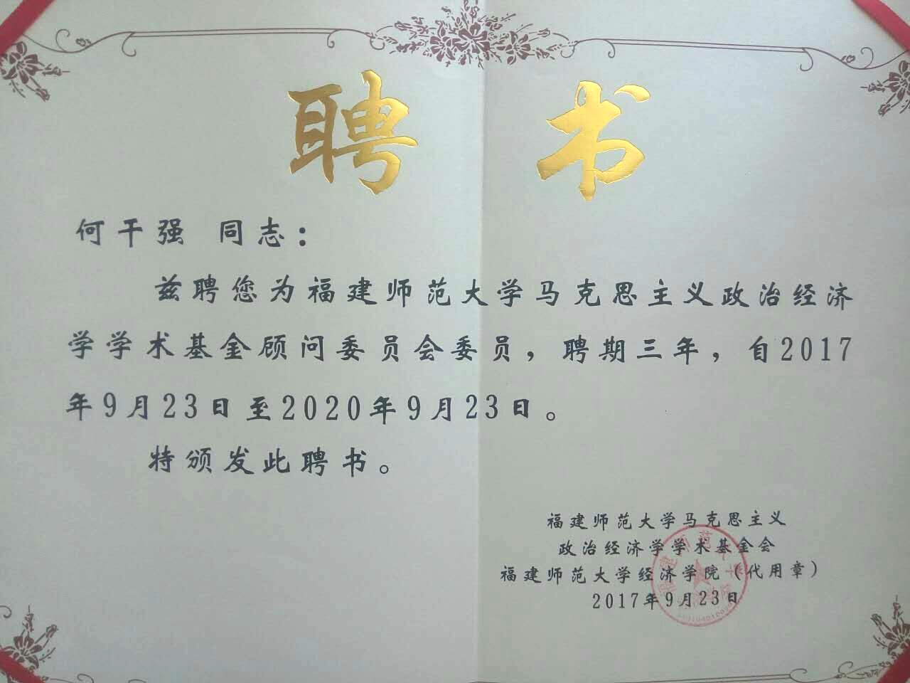 在会议期间,还举办了福建师范大学马克思主义政治经济学学术基金顾问委员会成立暨聘任仪式,公司何干强教授、周绍东教授受聘为顾问。据悉,该基金是由福建师范大学今年会员工余文辉博士捐款100万元设立的学术奖励基金,顾问委员会由包括著名经济学家卫兴华教授在内的22位全国知名政治经济学专家组成。