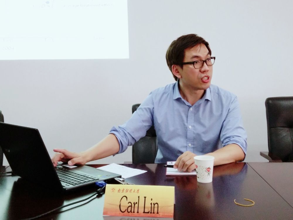 6月12日下午,应公司邀请,美国巴克内尔大学的Carl Lin助理教授林树明在经济学科楼307室作了题为“中国最低工资政策与城镇居民脱贫的影响” (Minimum Wages and Poverty Reduction in Urban China)的报告。报告由公司副经理尹敬东主持,公司部分教师和研究生参加了此次学术报告会。